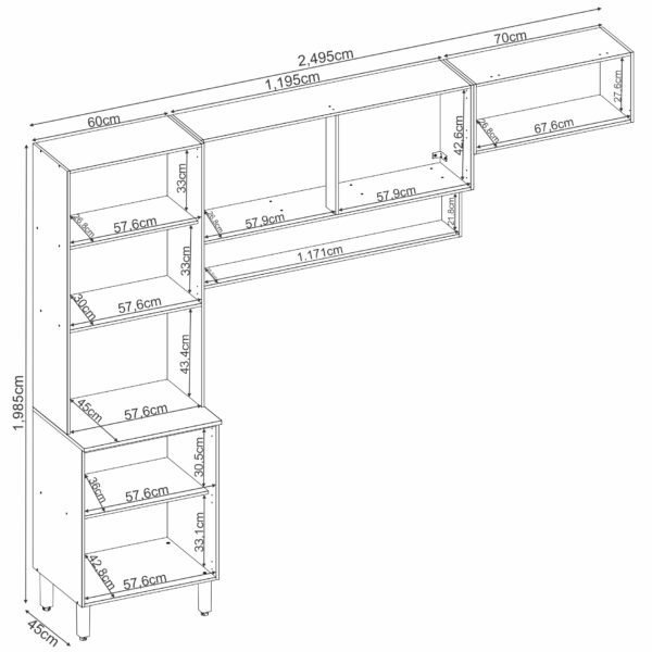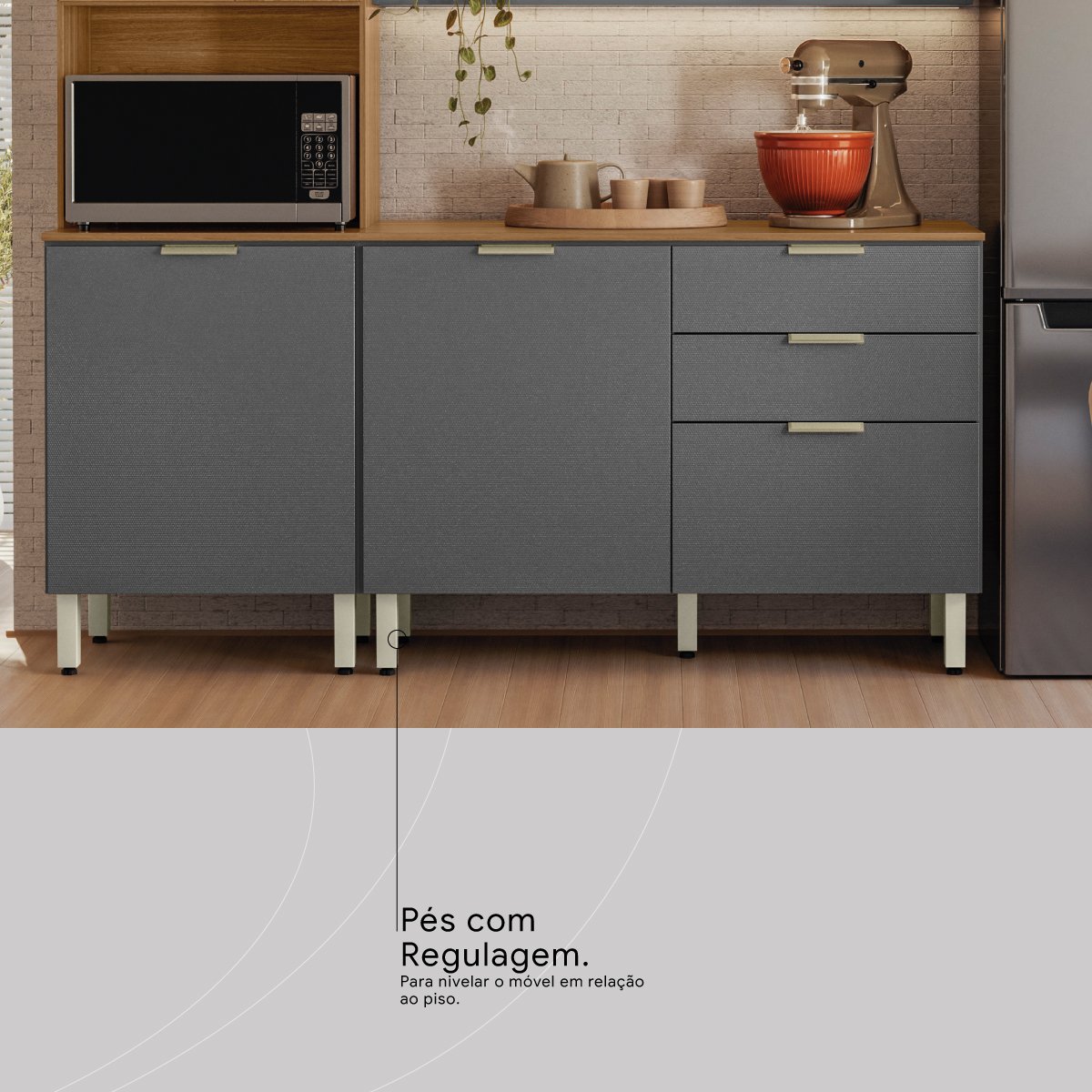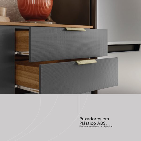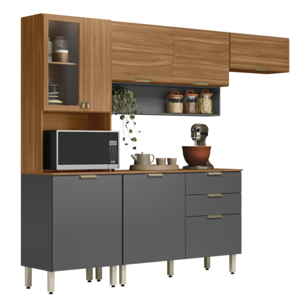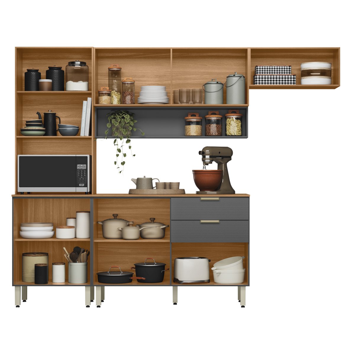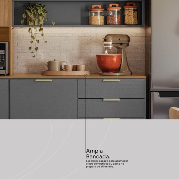 Cozinha Completa com Balcão Alba Amêndola/Grafito Prime TX – DEMÓBILE