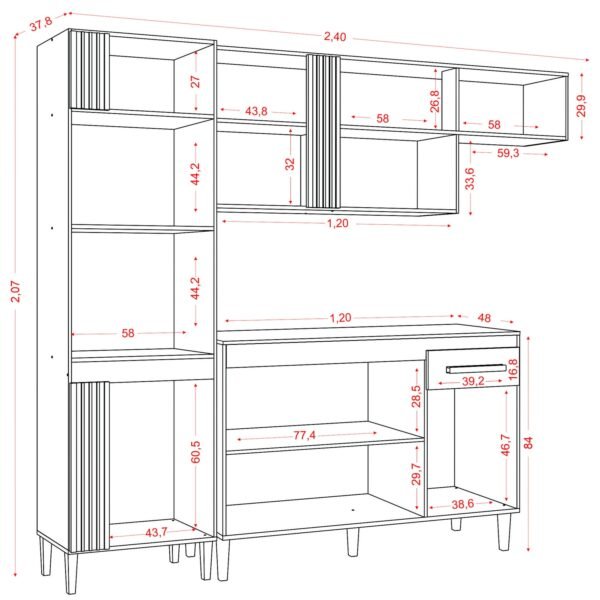 – Acabamento em verniz texturizado fosco e verniz brilho nas portas
