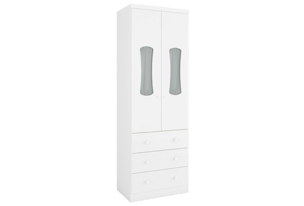 Guarda-Roupa 2 Portas Luna + Berço Uli Americano + Cômoda Junior Branco Brilho – PEROBA MÓVEIS