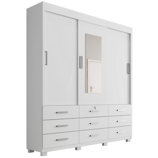 – Gavetas com puxadores em alumínio no guarda-roupa