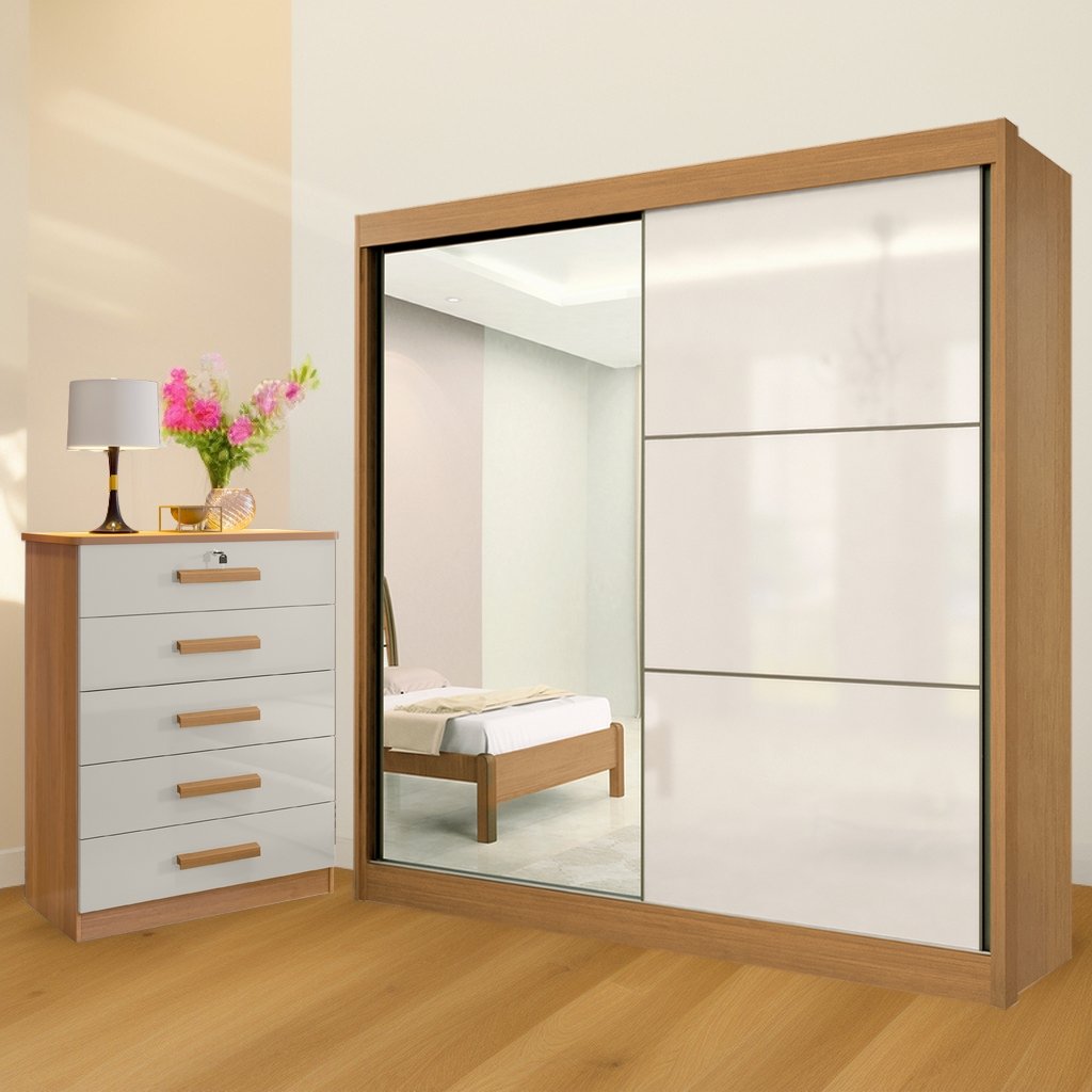 Guarda-Roupa 2 Portas Titanium + Cômoda Ipanema Cinamono/Off White/Cinamono – D’DORO MÓVEIS