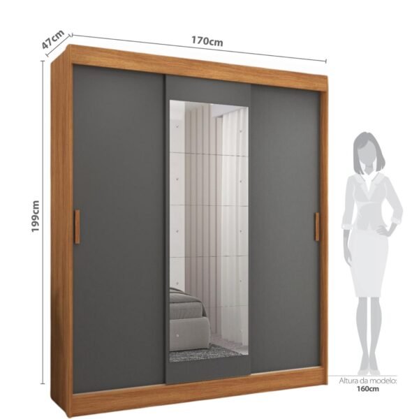 Guarda-roupa 3 Portas (com Espelho) Capri 1,70 M Cinamomo/grafite/off White – Fellicci