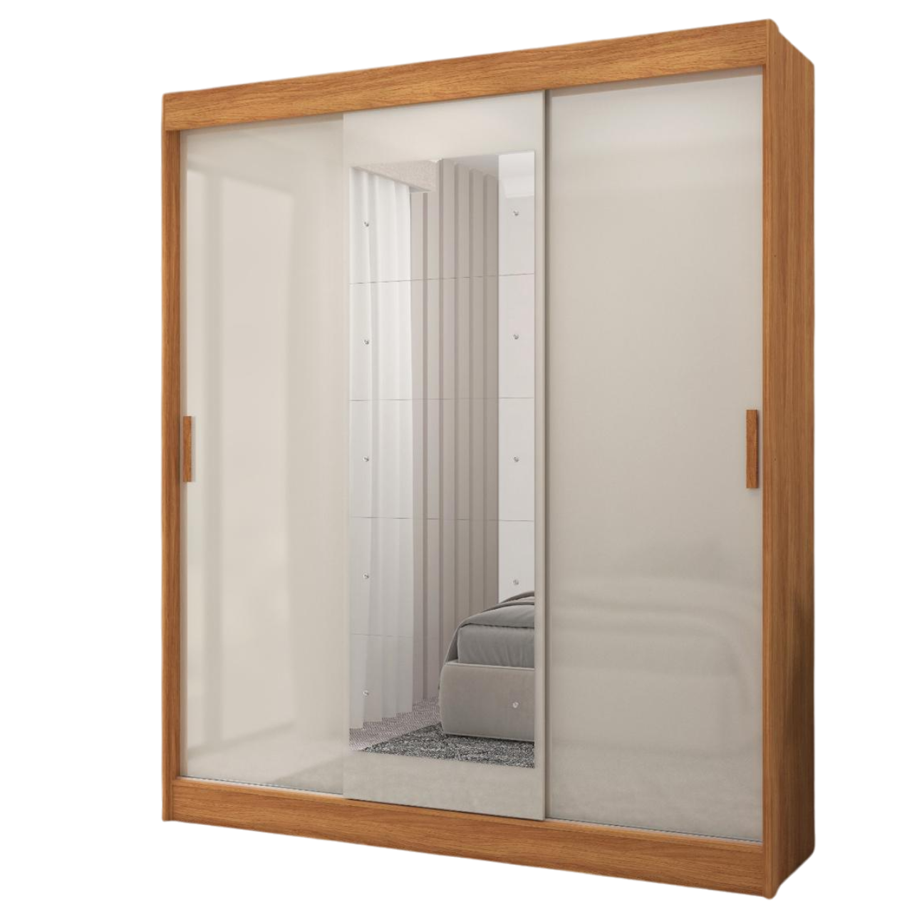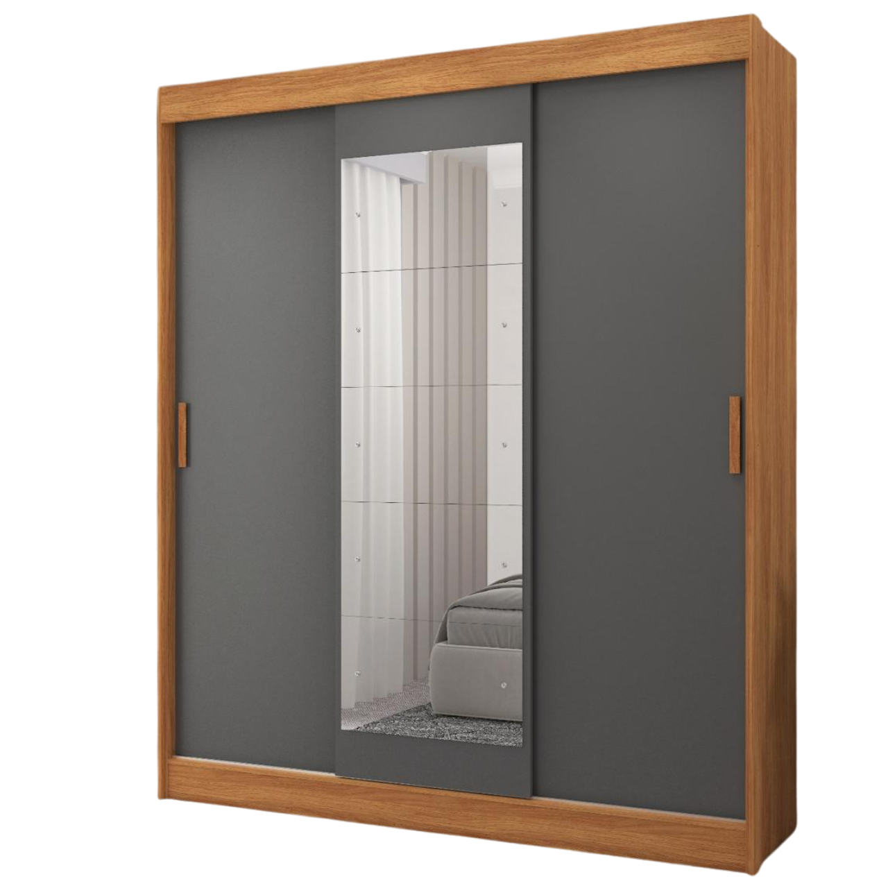 Guarda-Roupa 3 Portas (com espelho) Capri 1,70 m Cinamomo/Grafite/Off White – FELLICCI