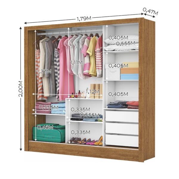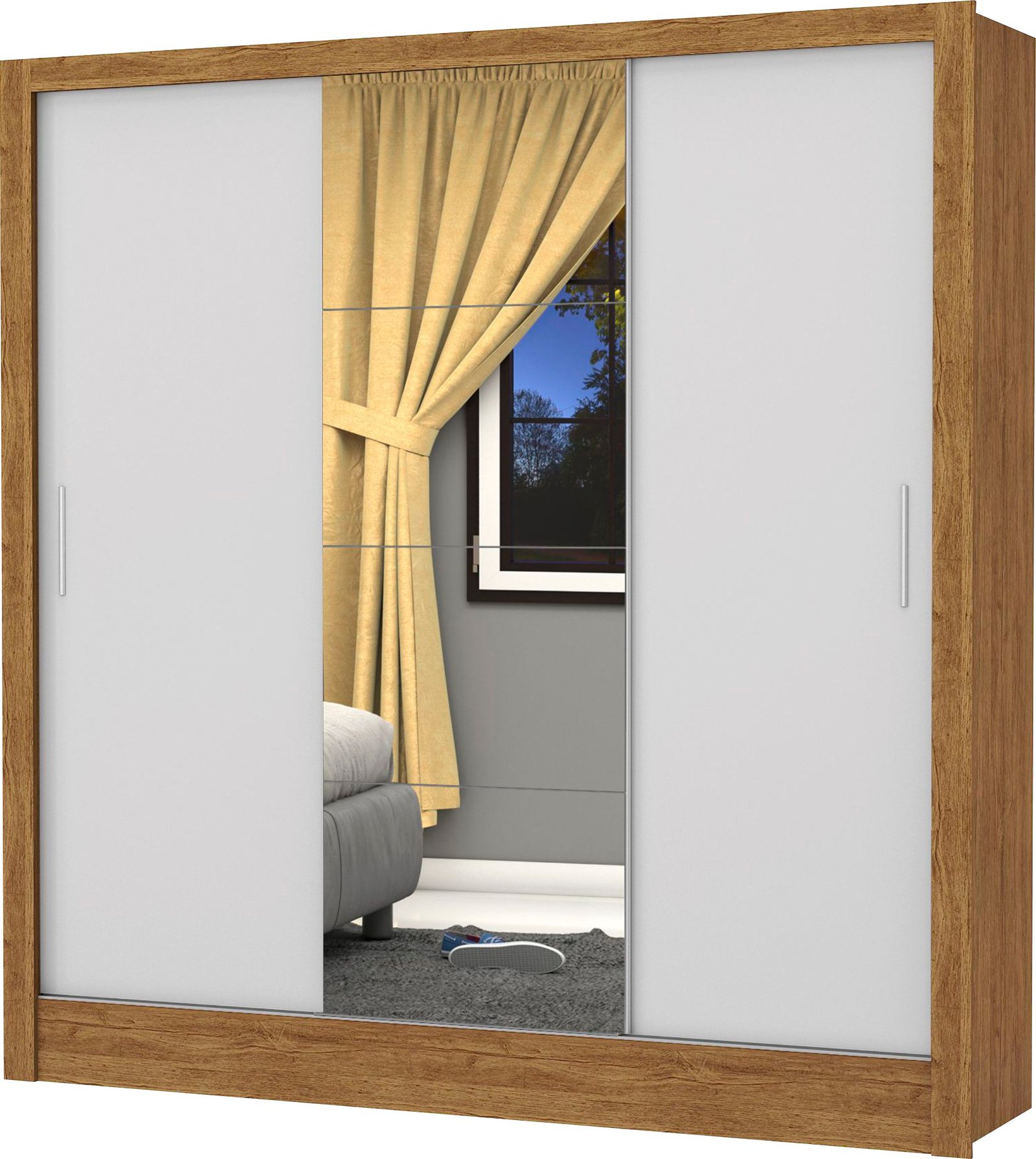 Guarda-Roupa 3 Portas Dubai/Santiago Plus(1 Porta espelhada) 1,79 m Freijó/Branco – CARIOCA MÓVEIS