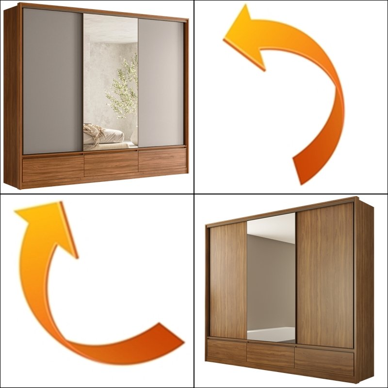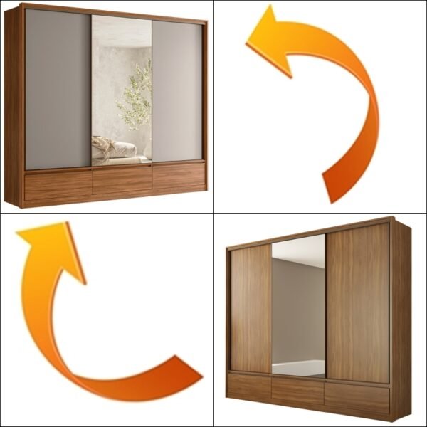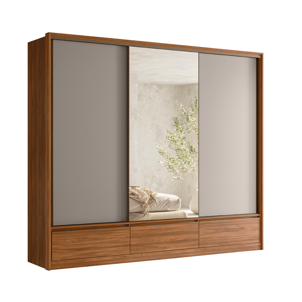 Guarda-Roupa 3 Portas Lounge Nogueira Touch/Nude Prime TX – DEMÓBILE