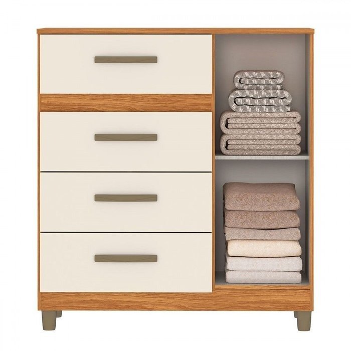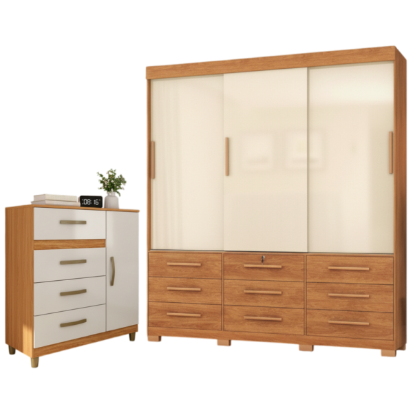 Guarda-Roupa 3 Portas Toronto RP1930 + Cômoda 4 Gavetas com Sapateira Leme CO240 Cinamomo/Off White/Cinamomo – FELLICCI