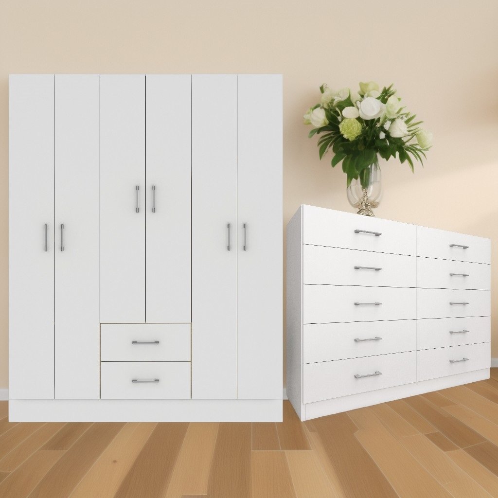 Guarda-Roupa 6 Portas Jamaica 6002 + Cômoda 10 Gavetas Caribe Branco – FELLICCI