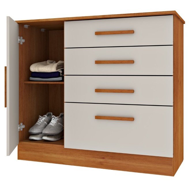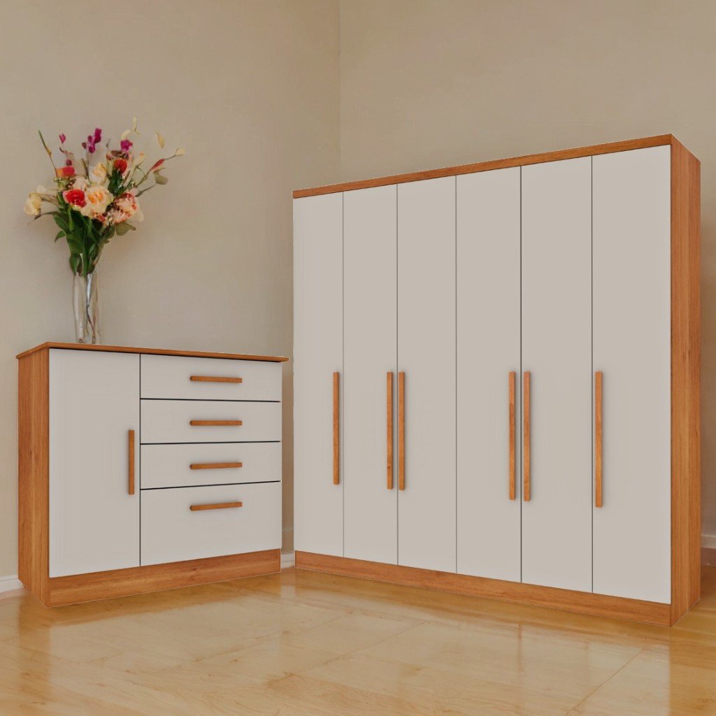 Guarda-Roupa 6 Portas Veneza/Padova + Cômoda Chicago/Berlim Cinamono/Off White – TCIL