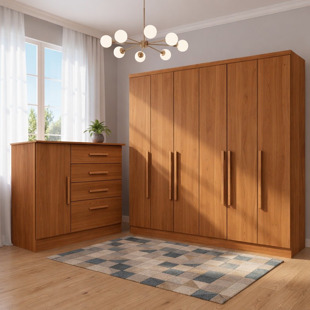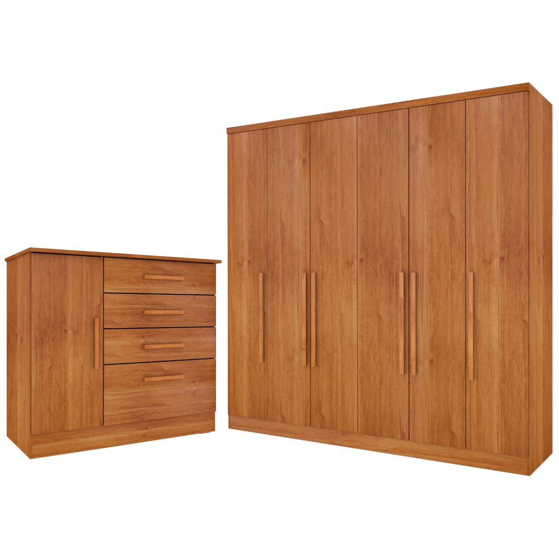 Guarda-Roupa 6 Portas Veneza/Padova + Cômoda Chicago/Berlim Cinamomo – TCIL
