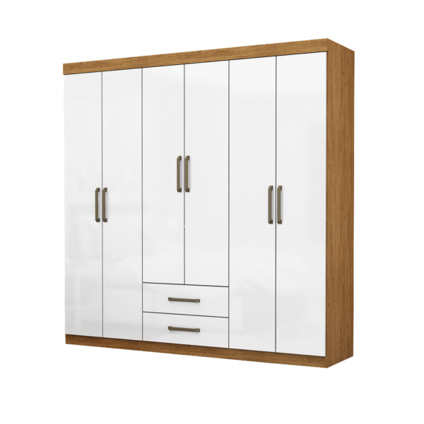 Guarda-Roupa 6 Portas/Sem Pés Dallas Cinamomo/Branco – CARIOCA MÓVEIS