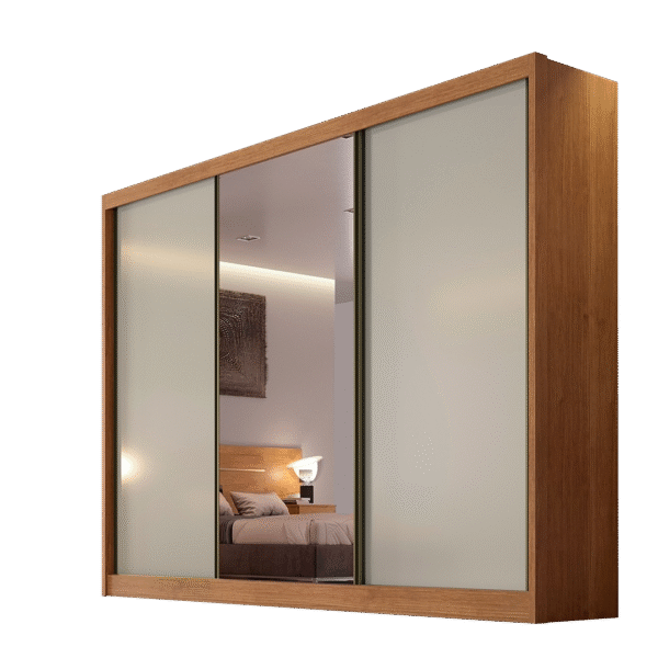 – Trilho inferior em alumínio e roldanas com amortecedores