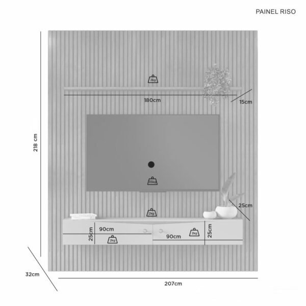 – Recomenda-se TV até 75″
