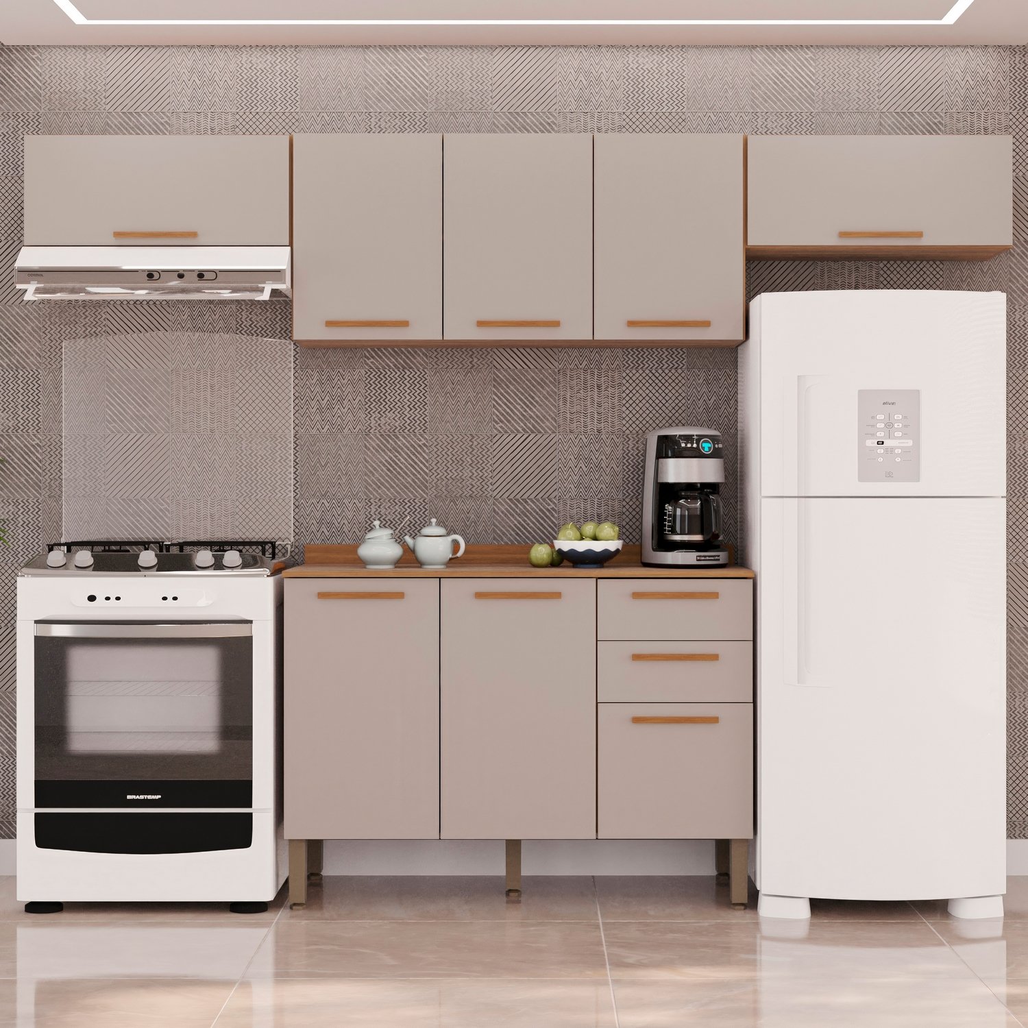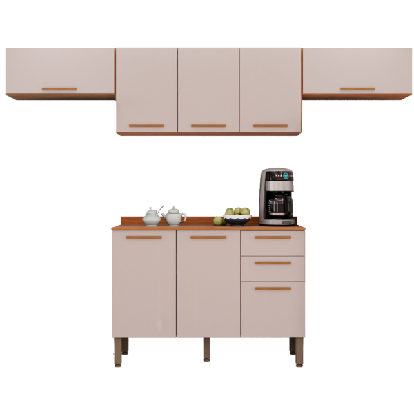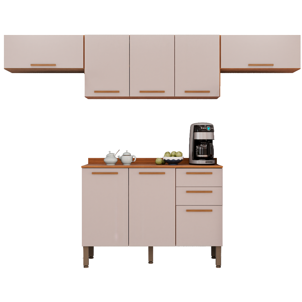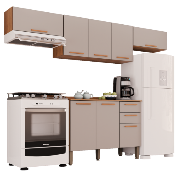 Kit 2 Armário Aéreo Geladeira + 1 Armário Aéreo Triplo + 1 Balcão New Valência Cinamomo/Off White – SALLÊTO