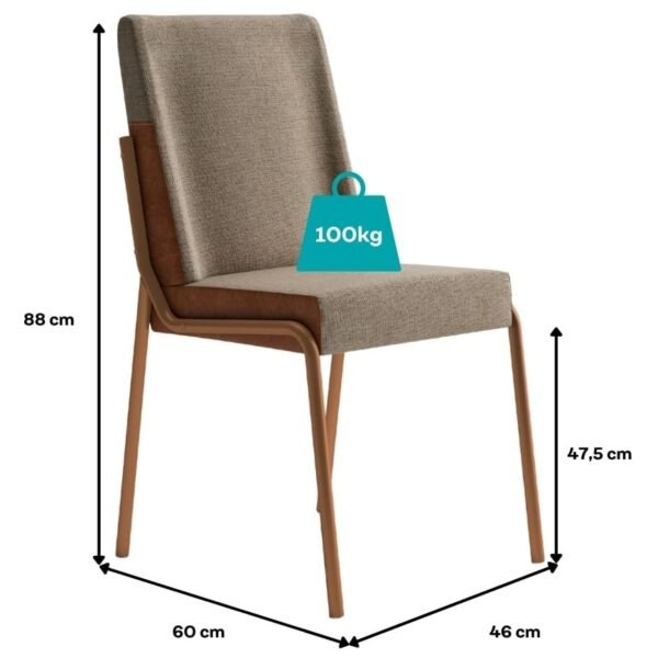 Kit 2 Cadeiras Hug 1749 Rosê Cobre/Linho Areia/Corino Caramelo – CARRARO MÓVEIS