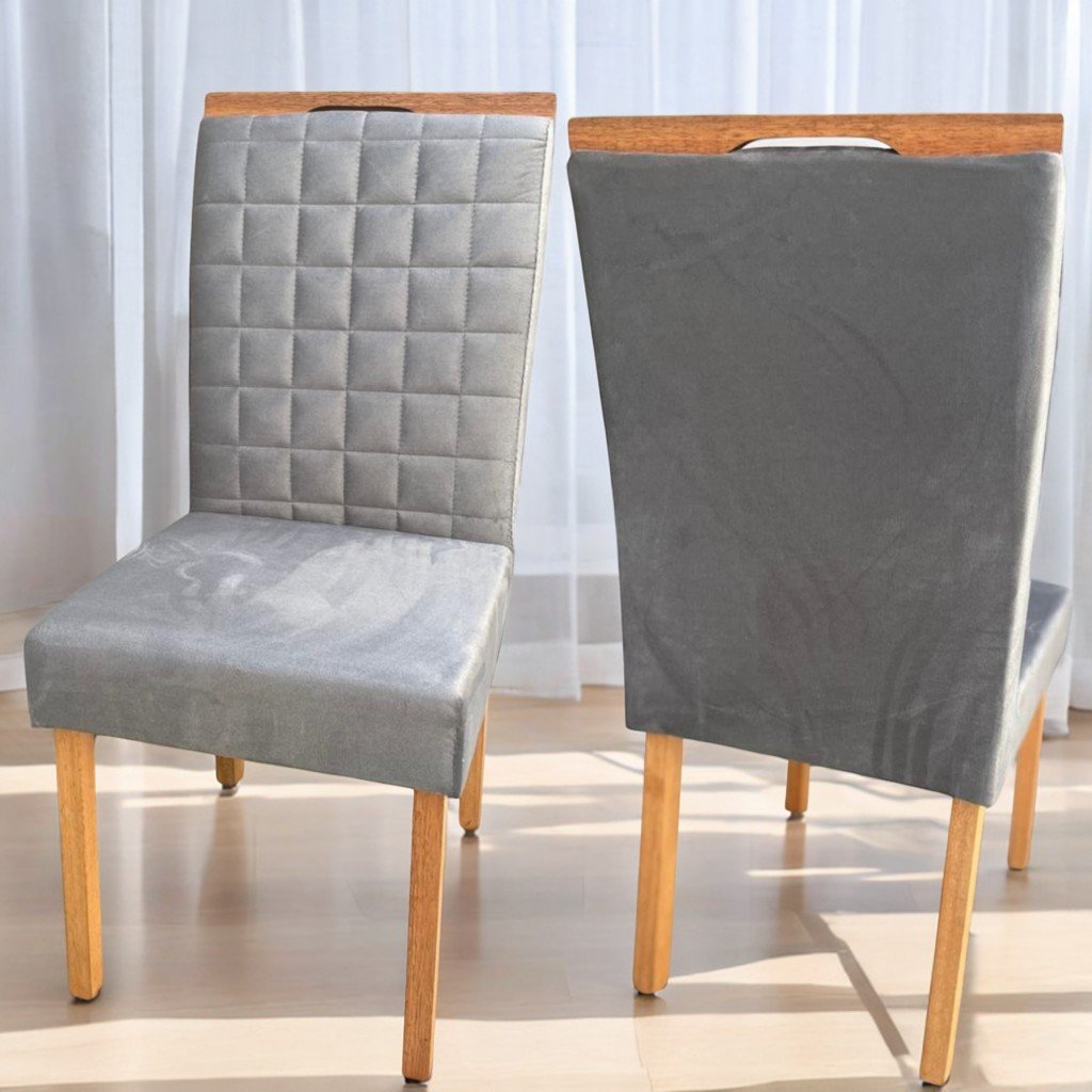 Kit 2 Cadeiras Pandora 01 Imbuia Mel/Veludo Cinza Grafite 414 – CARVALHO DECOR