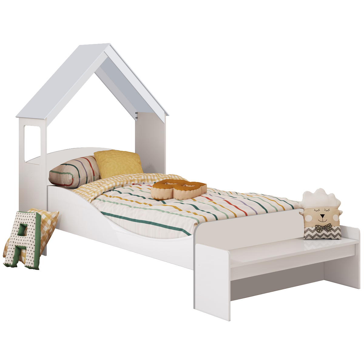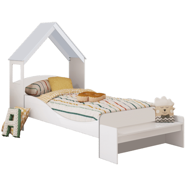 Kit Casinha + Cama Solteiro Lua Branco Brilho – PEROBA MÓVEIS