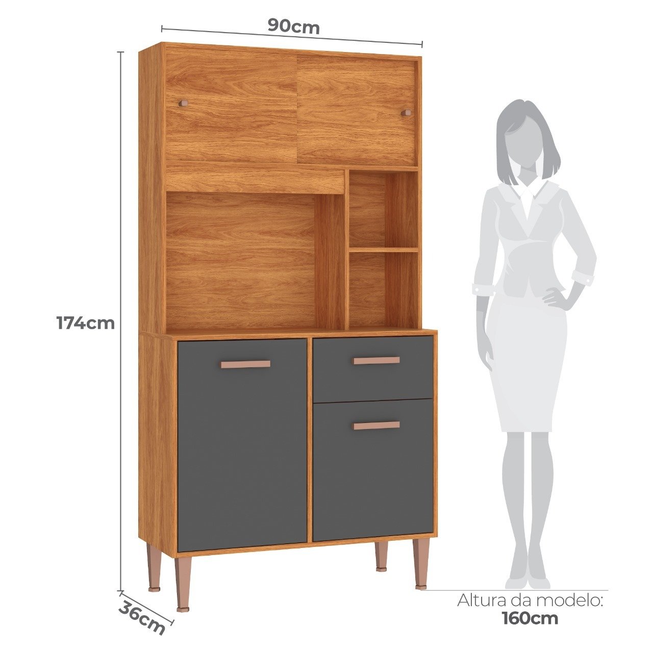 Kit Cozinha Dália C211 0,90 m Cinamono/Grafite – FELLICCI