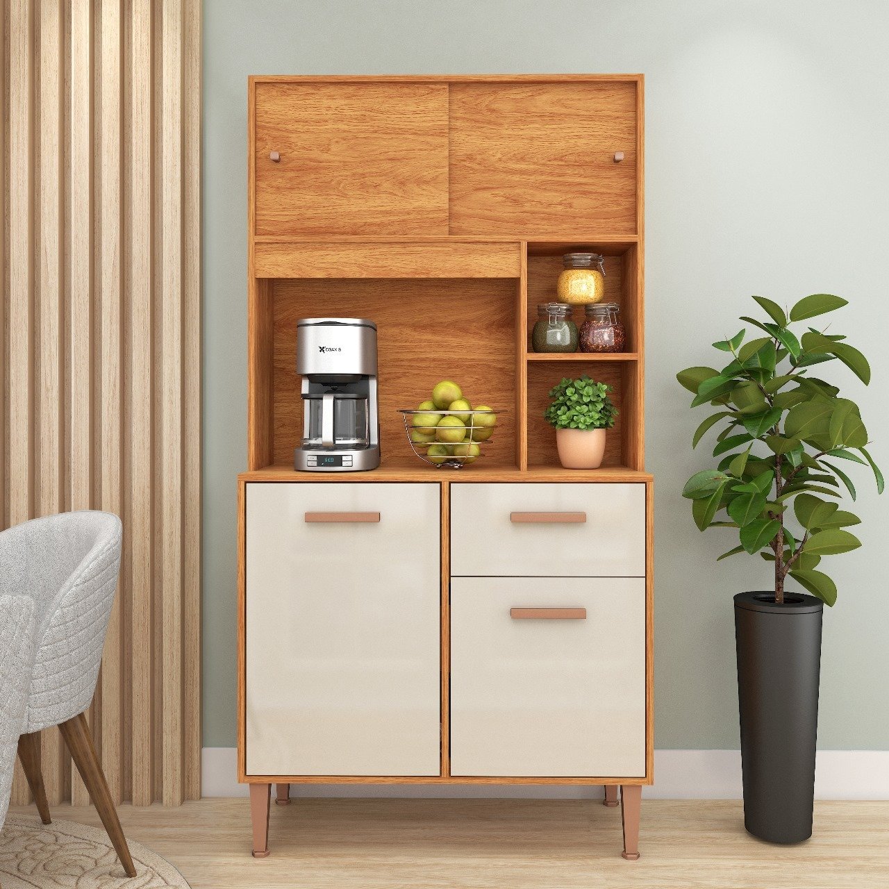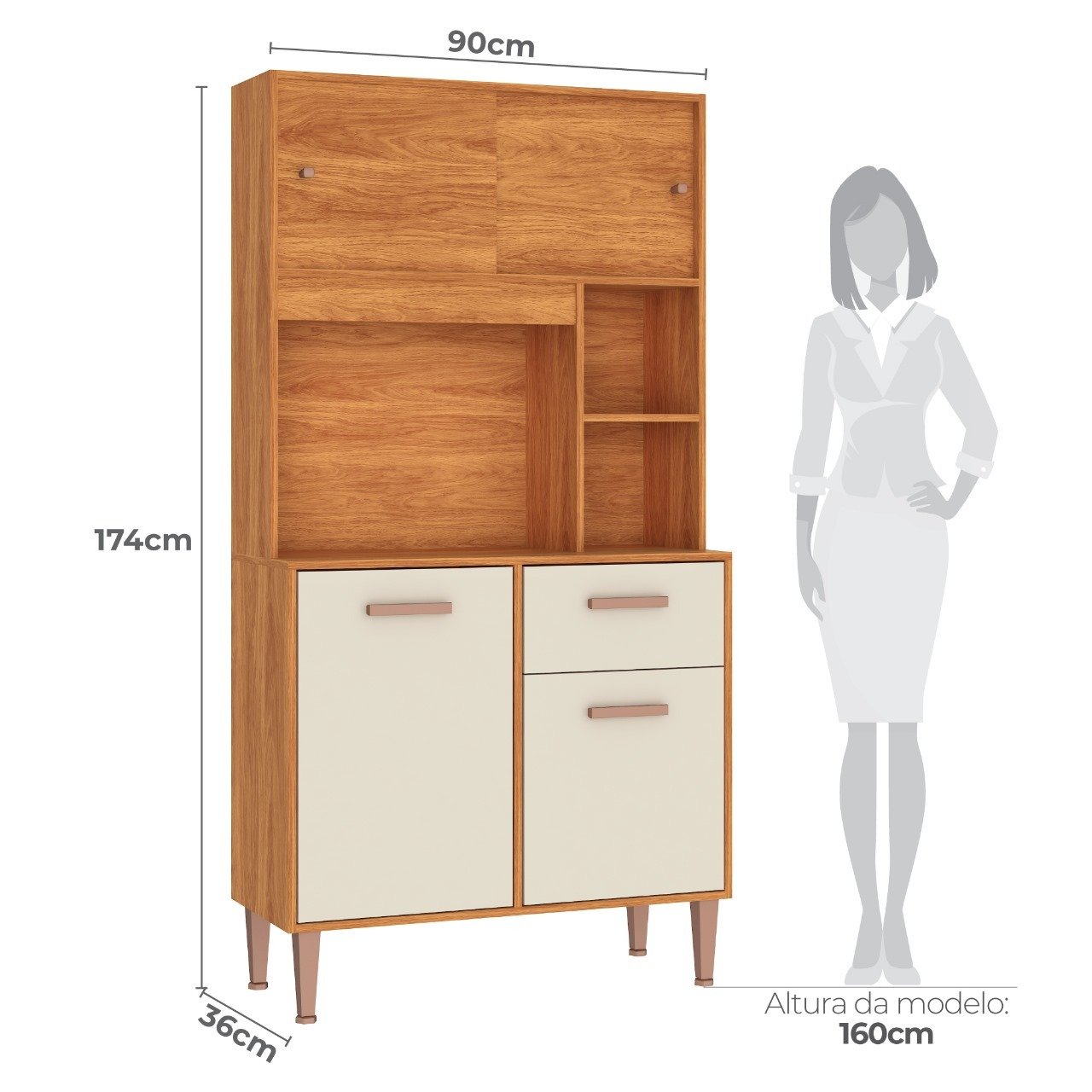 Kit Cozinha Dália C211 0,90 m Cinamono/Off White – FELLICCI