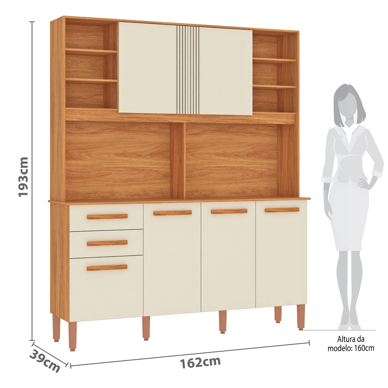 Kit Cozinha Málaga CM720 1,62 m Cinamomo/Off White – FELLICCI