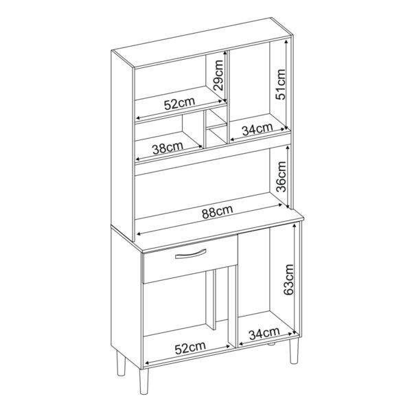 – Espaço para microondas 36 cm x 87 cm x 35 cm (AxLxP)
