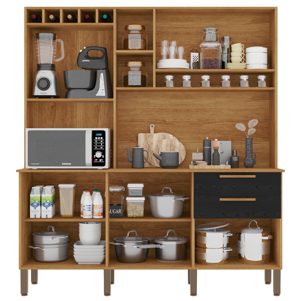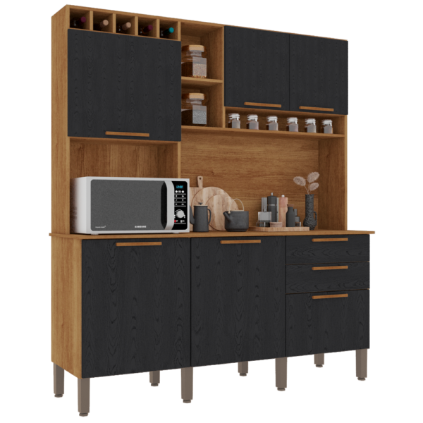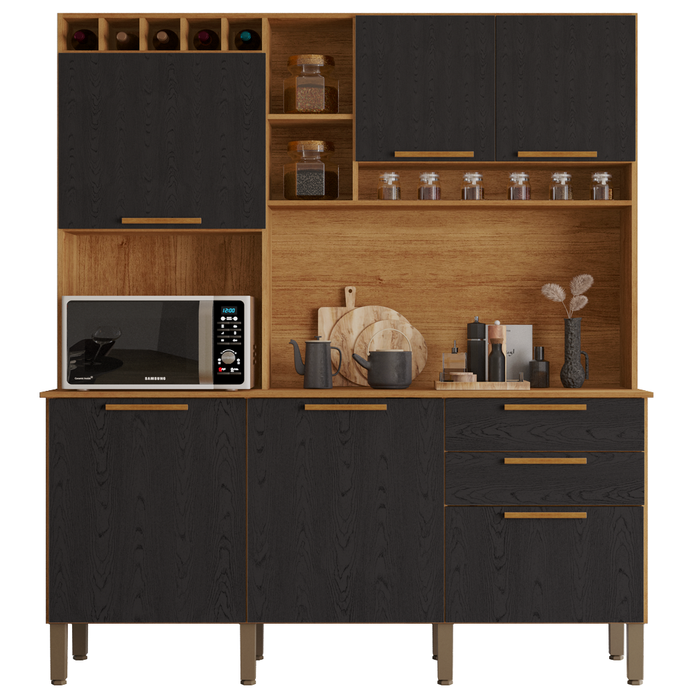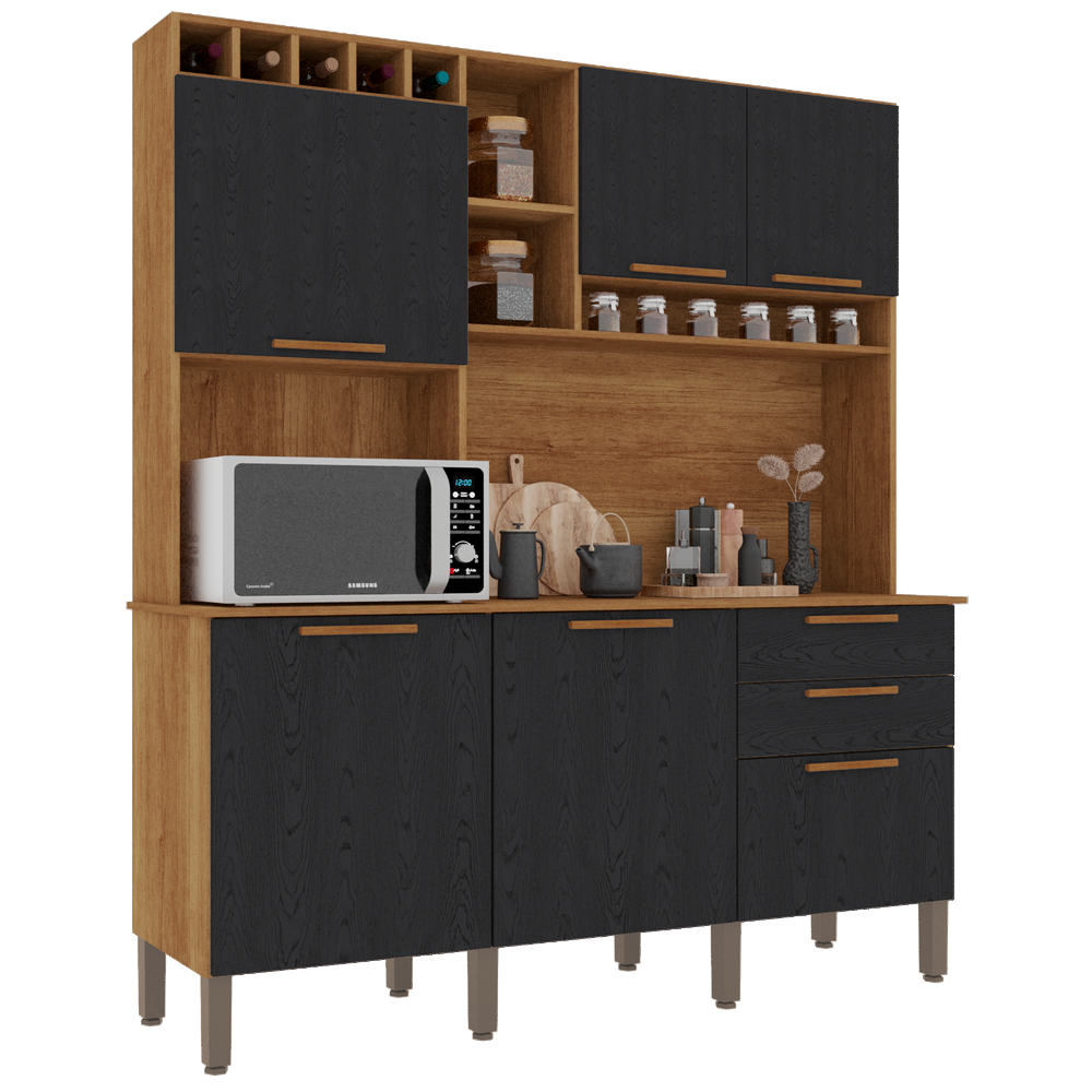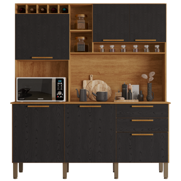 Kit Cozinha New Topazio 1,65 m Cinamomo/Preto – SALLETO