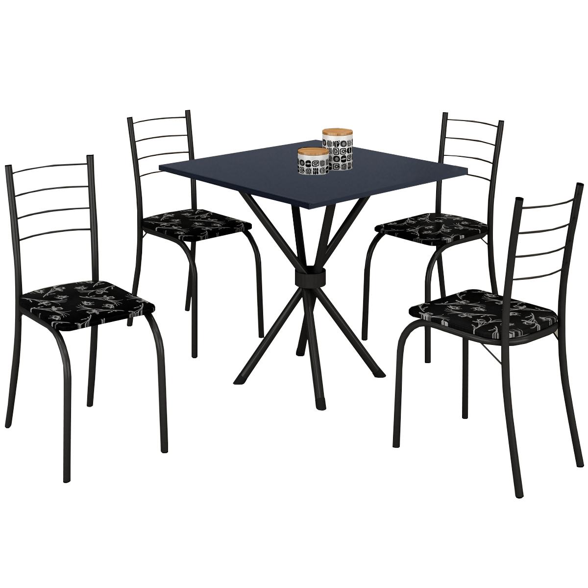 Mesa 4 Cadeiras Rio 75×75 Preto/Grafite/Preto Lírio – TEIXEIRA
