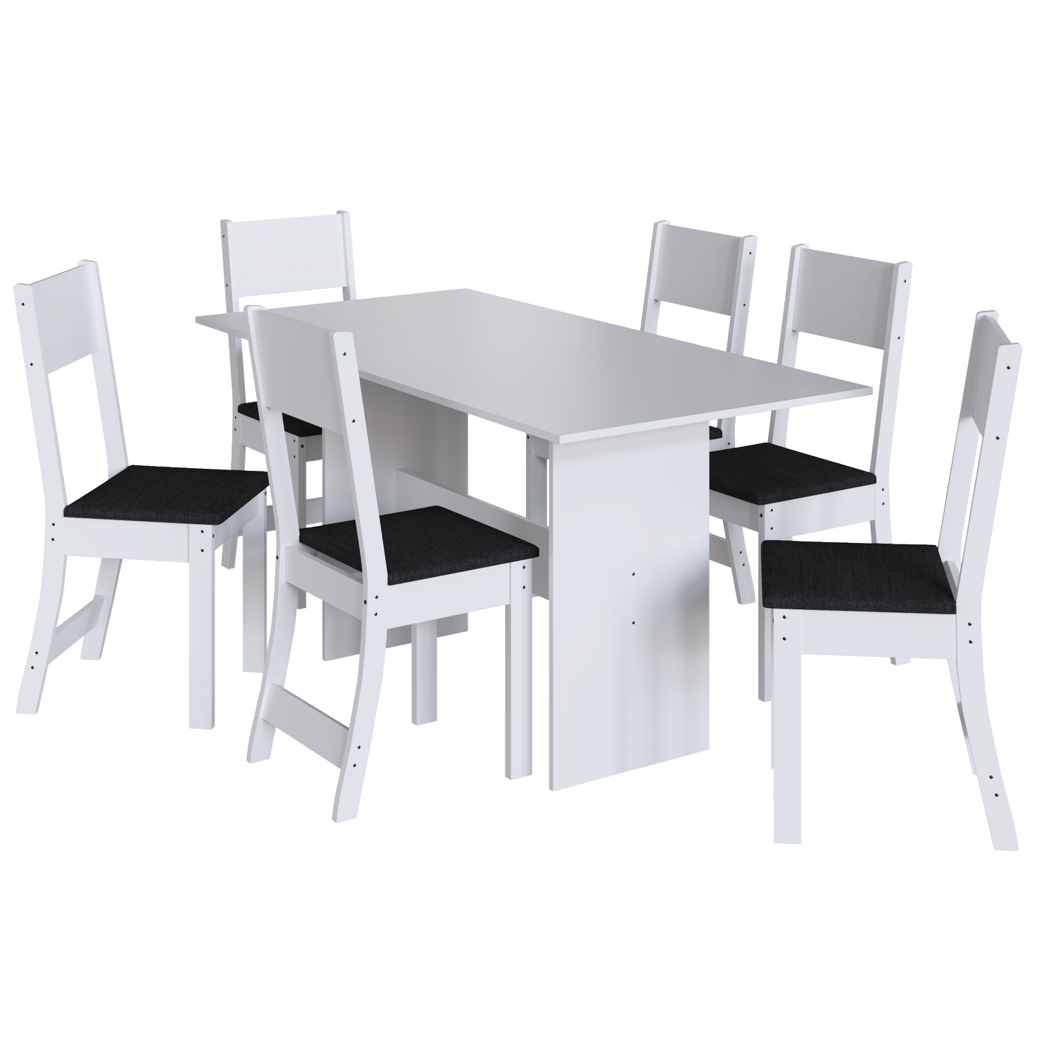 Mesa 6 Cadeiras Karla Branco/Linho Preto – INDÉKES
