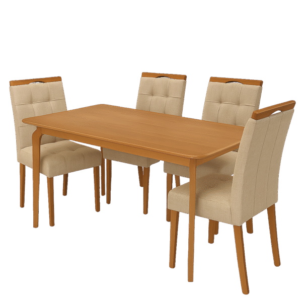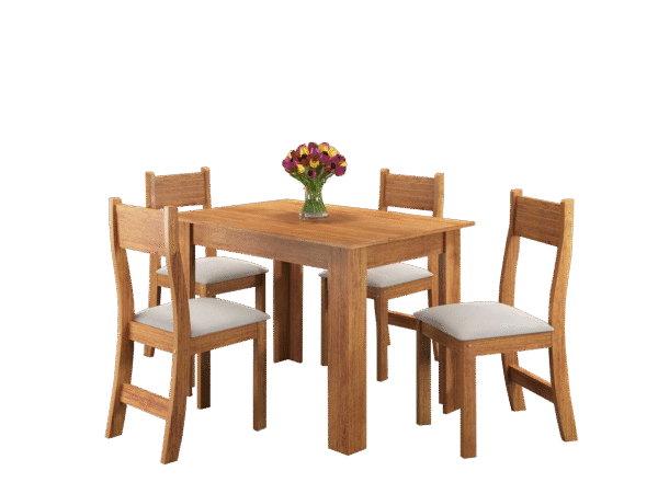Mesa Alegra 120 Cinamomo com 4 Cadeiras Sophia Linho Bege 200 – JCM MOVELARIA + WM DECOR