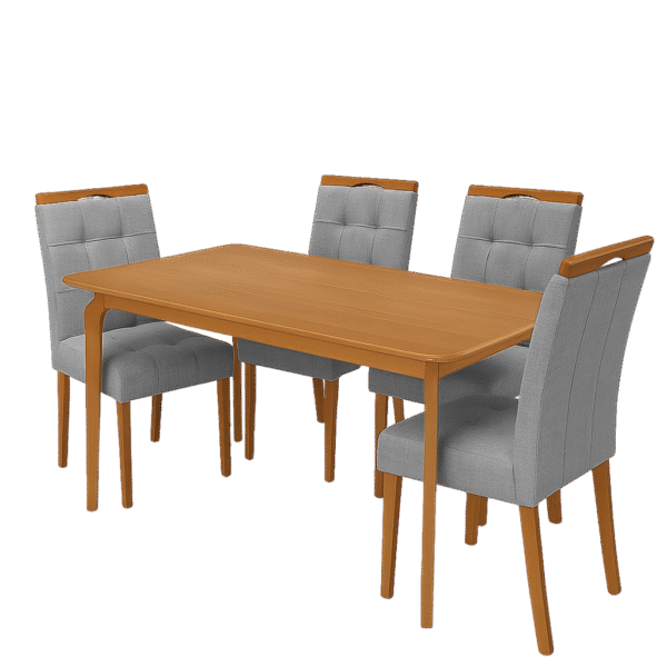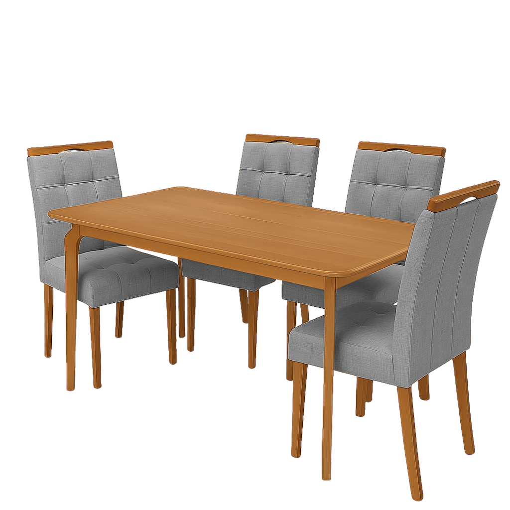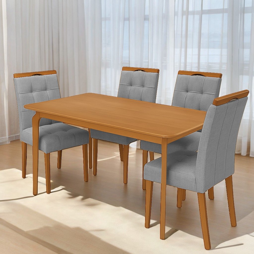 Mesa Alegra 120 Cinamomo com 4 Cadeiras Sophia Linho Cinza Grafite 202 – JCM MOVELARIA + WM DECOR