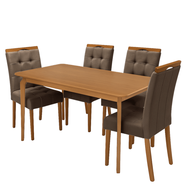 Mesa Alegra 120 Cinamomo com 4 Cadeiras Sophia Veludo Marrom – JCM MOVELARIA + WM DECOR