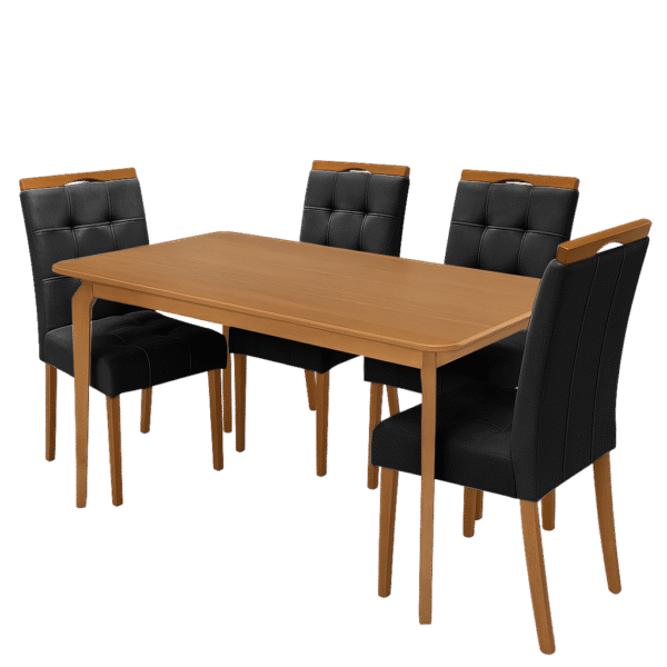 Mesa Alegra 120 Cinamomo com 4 Cadeiras Sophia Veludo Preto – JCM MOVELARIA + WM DECOR