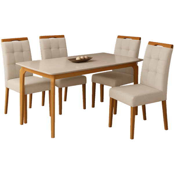 Mesa Alegra 120 Cinamomo/Off White com 4 Cadeiras Sophia Linho Bege 200 – JCM MOVELARIA + WM DECOR