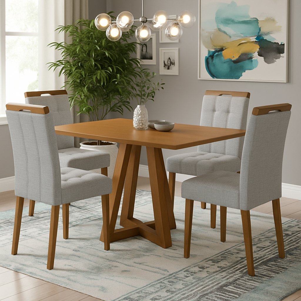 Mesa Alva ME02 120 Canela com 4 Cadeiras Sophia Linho Cinza Prata 206 – KAPPESBERG + WM DECOR
