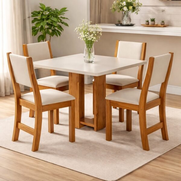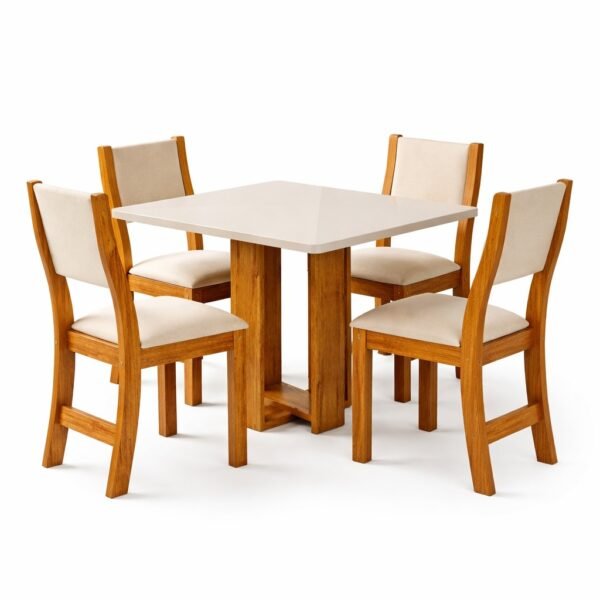 Mesa Anjo/Angel 90 Mel/Blonde/Off White com 4 Cadeiras Sol Linho Bronze – VIERO MÓVEIS