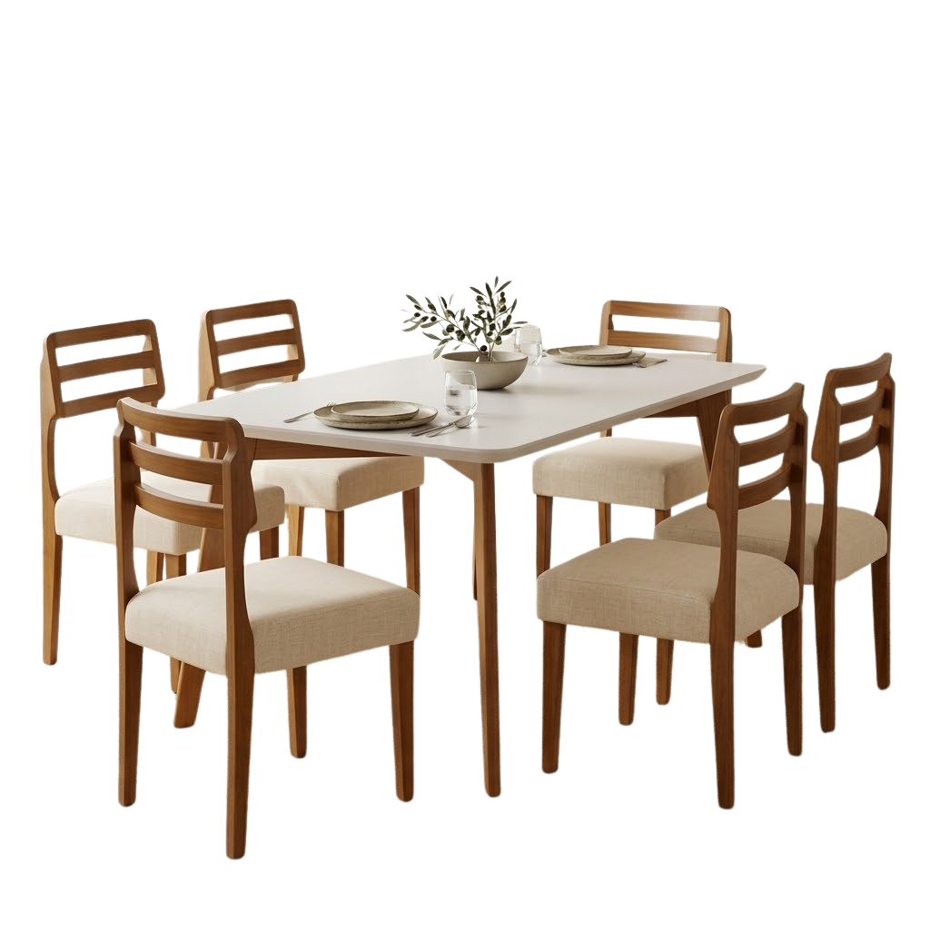 Mesa Anne 180 Mel/Off White com 6 Cadeiras Turquia Linho Palha 311A – HR MOVELARIA