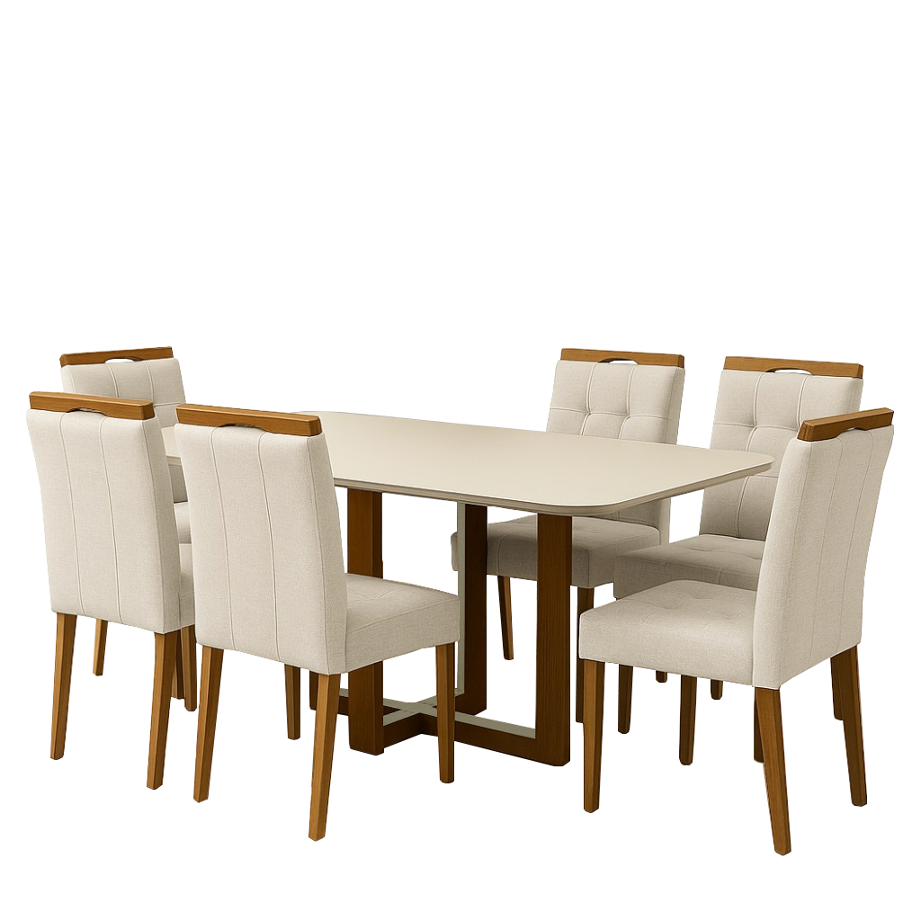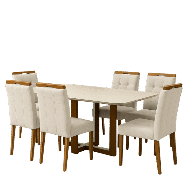 Mesa Atlas Mel/Off White Canto Copo 160×80 com 6 Cadeiras Sophia Linho Bege 200 – ART ASSENTOS + WM DECOR