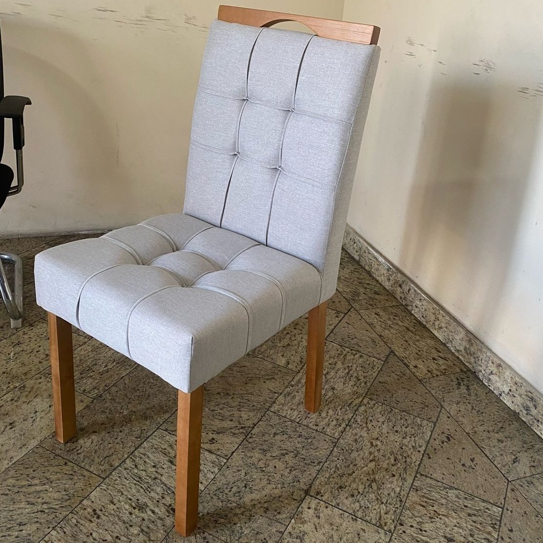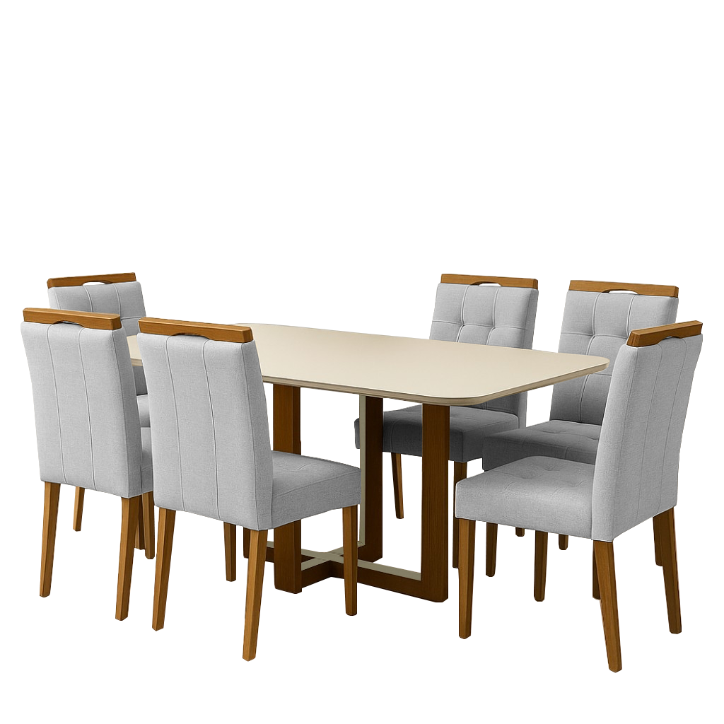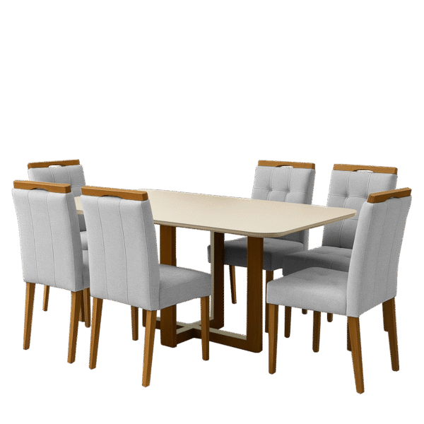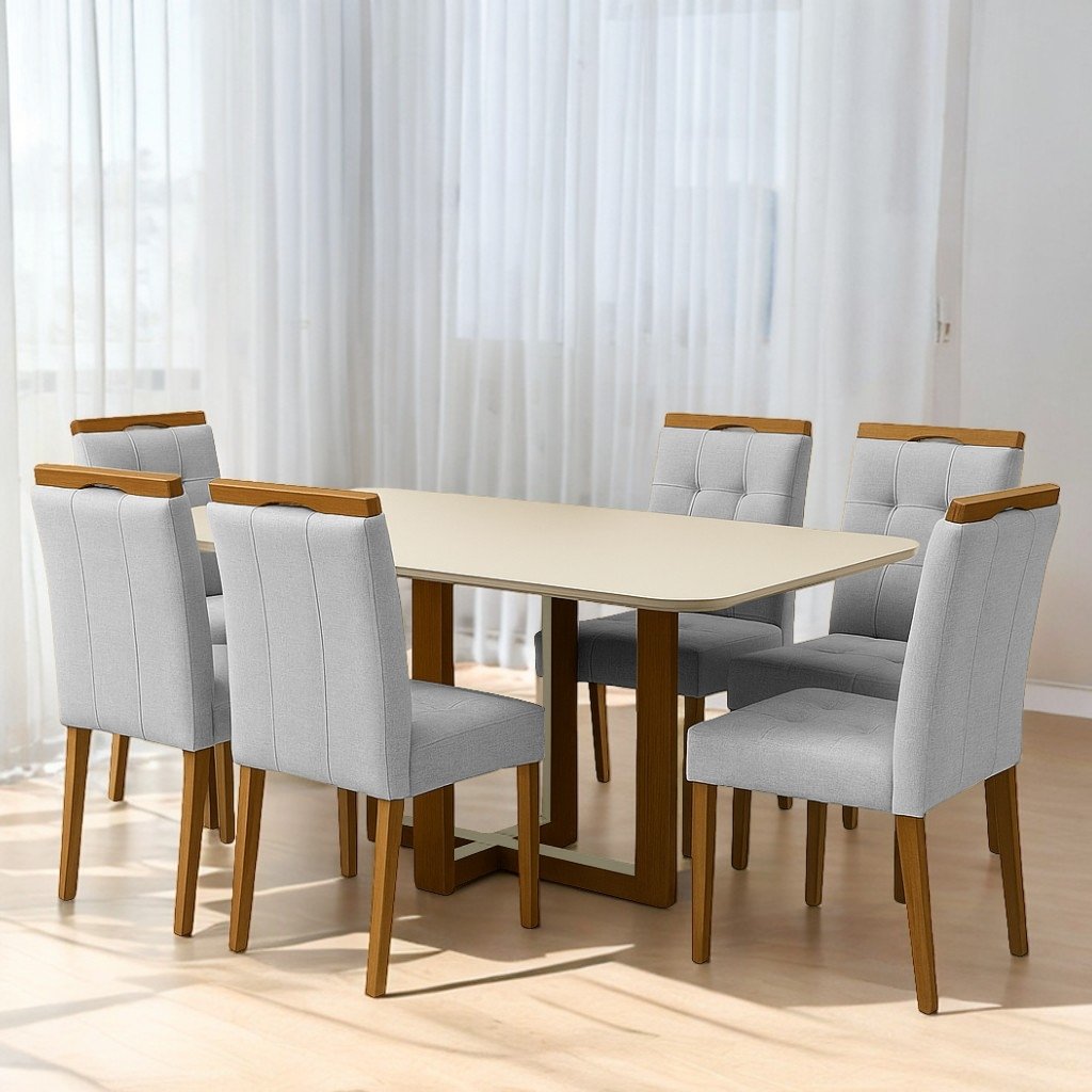 Mesa Atlas Mel/Off White Canto Copo 160×80 com 6 Cadeiras Sophia Linho Cinza Grafite 202 – ART ASSENTOS + WM DECOR