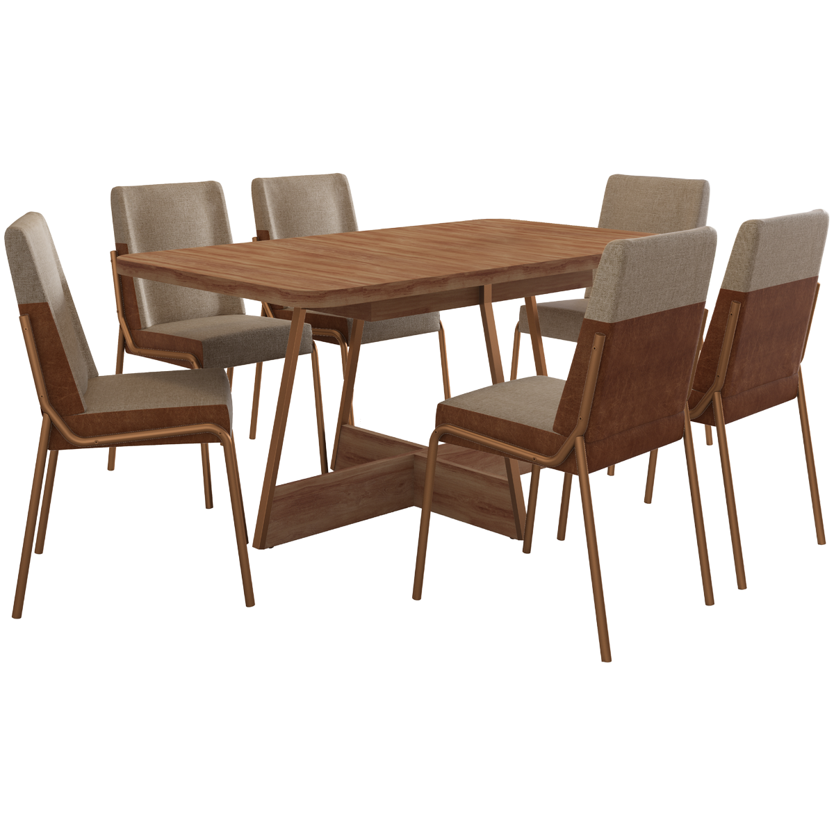 Mesa Átria 1592 Retangular 160 Rosê Cobre/Nogal Freijó com Cadeiras Hug 1749 Rosê Cobre/Linho Areia/Corino Caramelo – CARRARO MÓVEIS