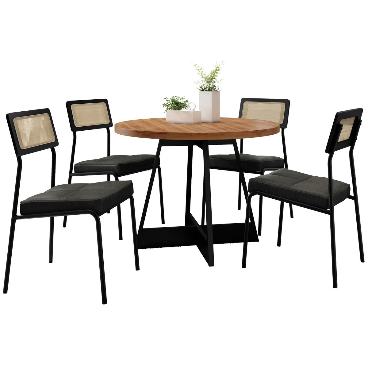 Mesa Átria 1594 Redonda 100 Preto/Nogal com 4 Cadeiras Lux 1741 Preto/Linho Grafite/Corino Preto – CARRARO MÓVEIS