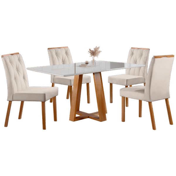 Mesa Ayres 120 Mel/Off White com 4 Cadeiras Yasmim Veludo Bege – VIEIRA DECOR