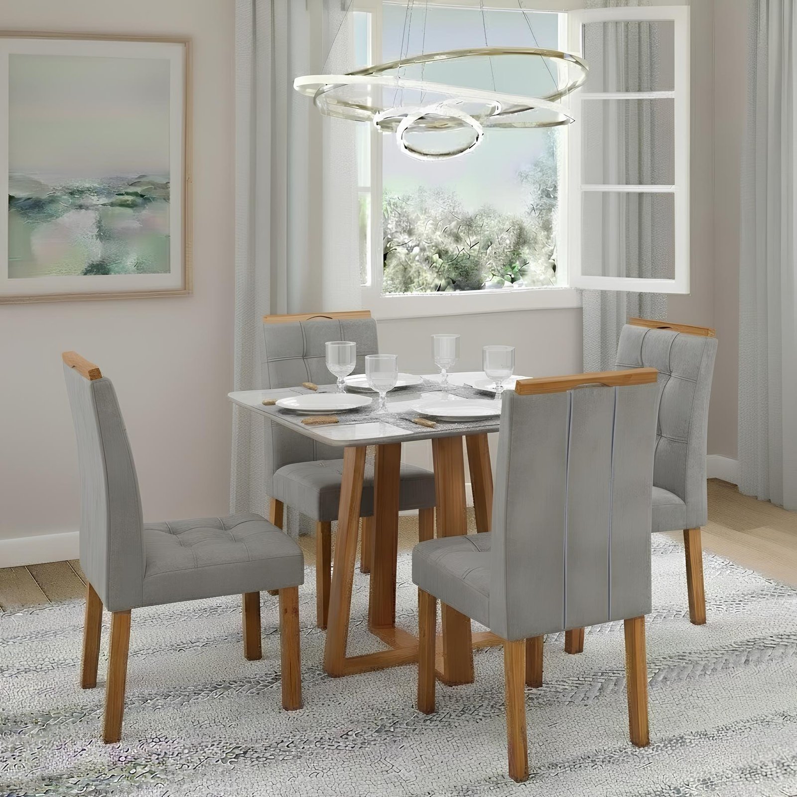 Mesa Bali 90 Cinamomo/Off White com 4 Cadeiras Sophia Veludo Cinza Grafite – MINASPLAC + WM DECOR