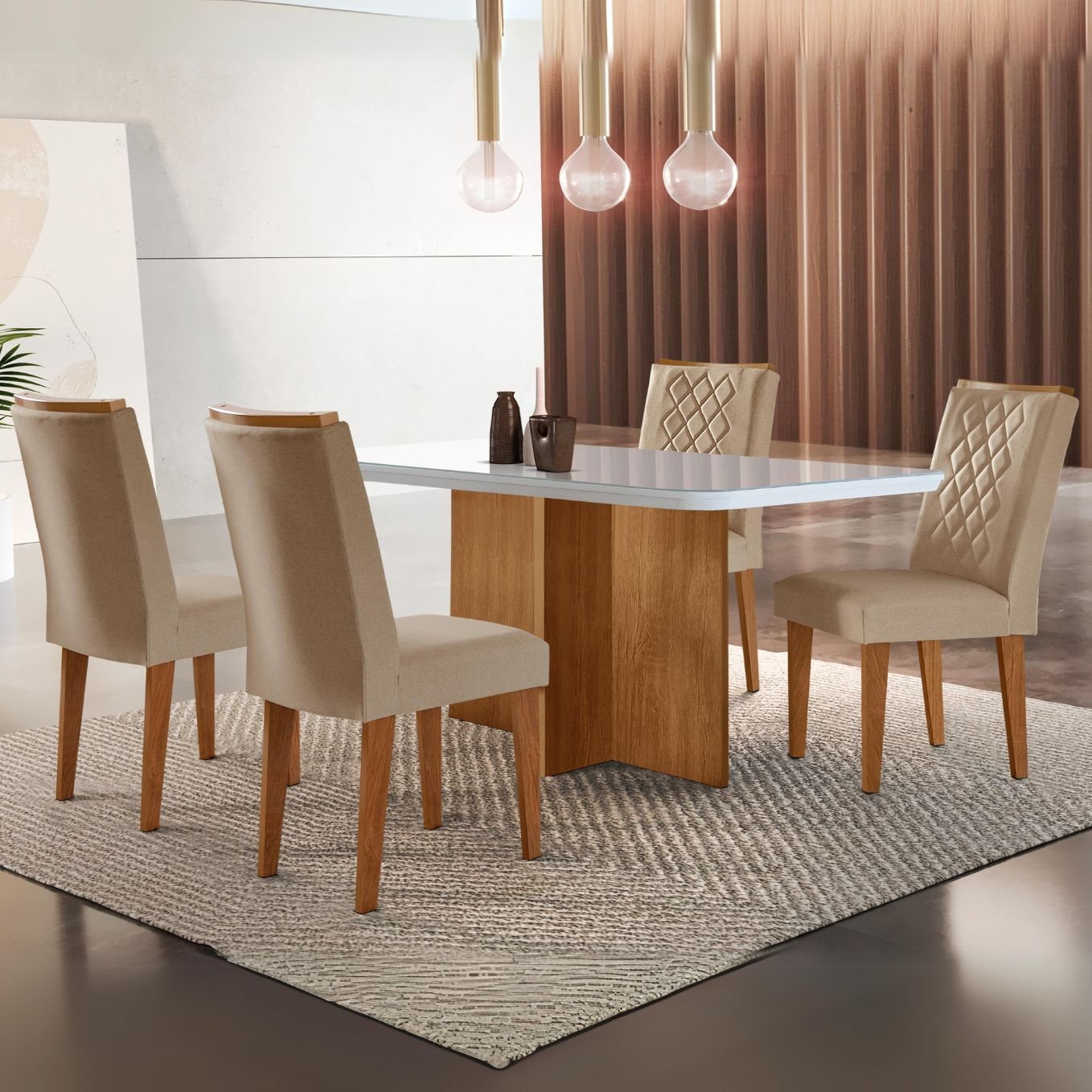 Mesa Berlim 120 Canto Copo Imbuia/Off White com 4 Cadeiras Jade Linho Turim 07 – RUFATO