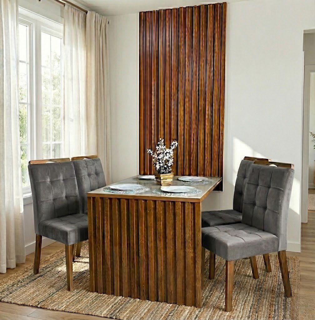 Mesa Cancun 120 Cinamomo/Off White com 4 Cadeiras Sophia Veludo Cinza Grafite – CEL MÓVEIS + WM DECOR
