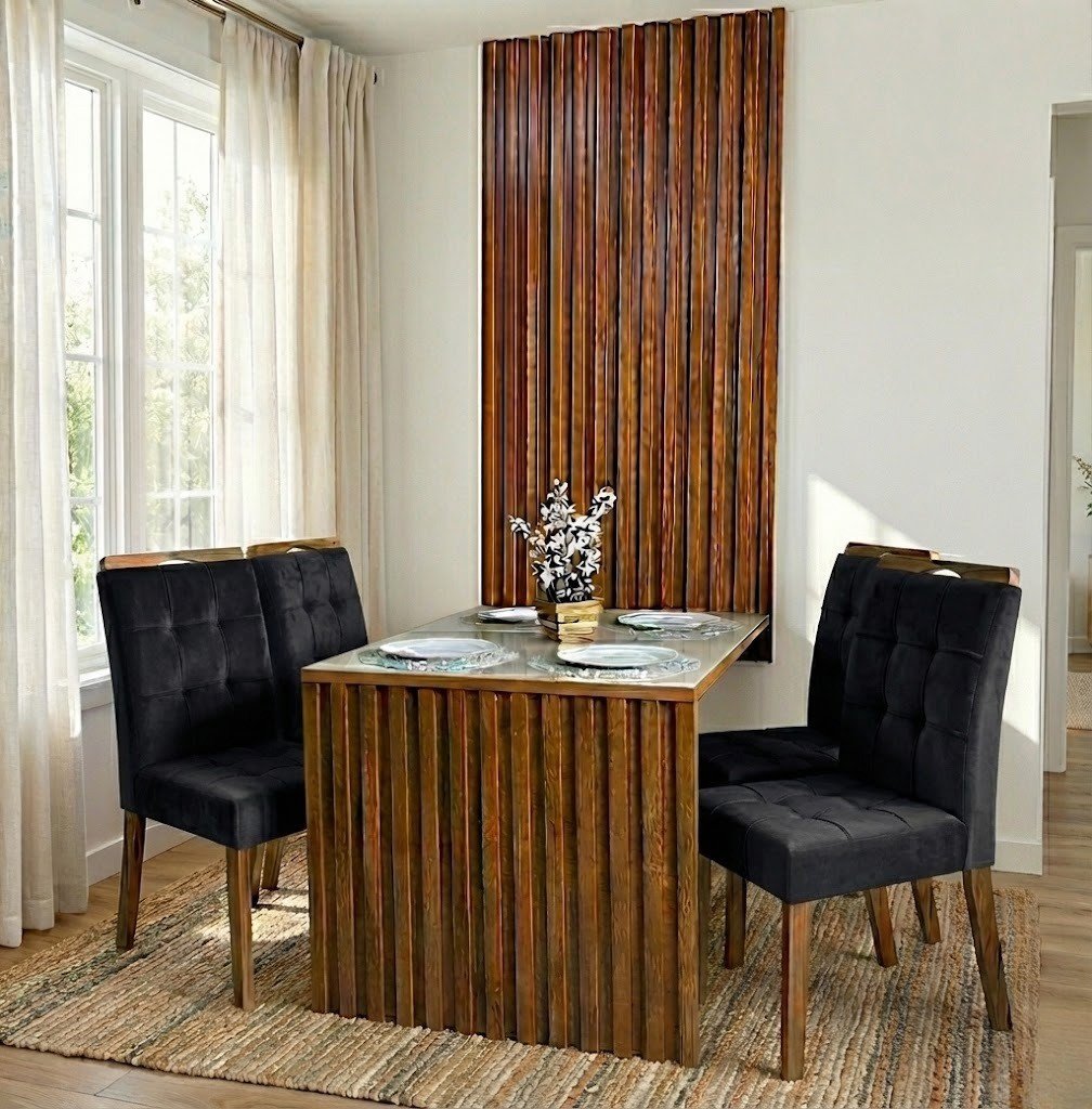 Mesa Cancun 120 Cinamomo/Off White com 4 Cadeiras Sophia Veludo Preto – CEL MÓVEIS + WM DECOR