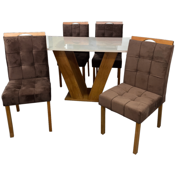 Mesa Classic 120 Cinamomo/Off White com 4 Cadeiras Sophia Mel/Veludo Marrom – CEL MÓVEIS + WM DECOR