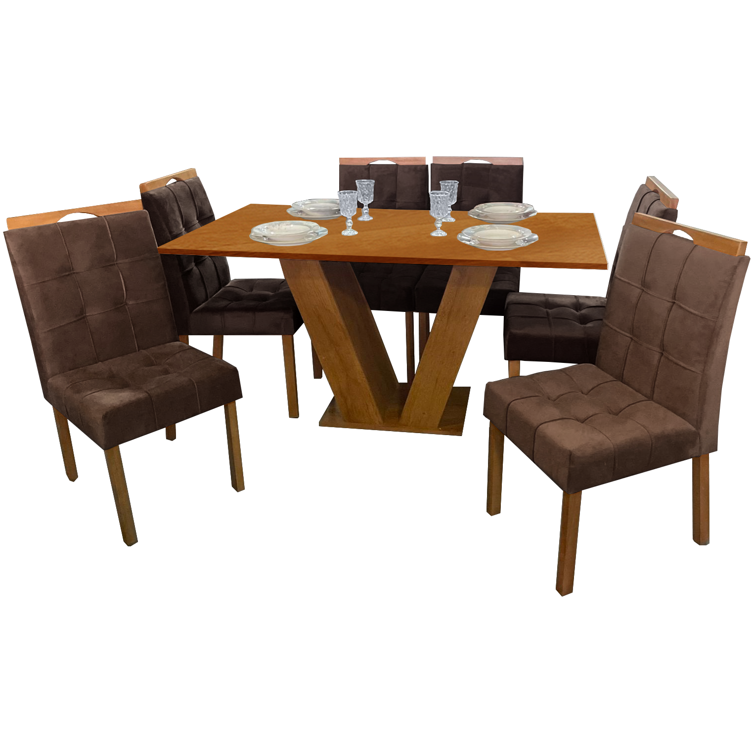 Mesa Classic 160 Cinamomo Laminado com 6 Cadeiras Sophia Mel/Veludo Marrom – CEL MÓVEIS + WM DECOR