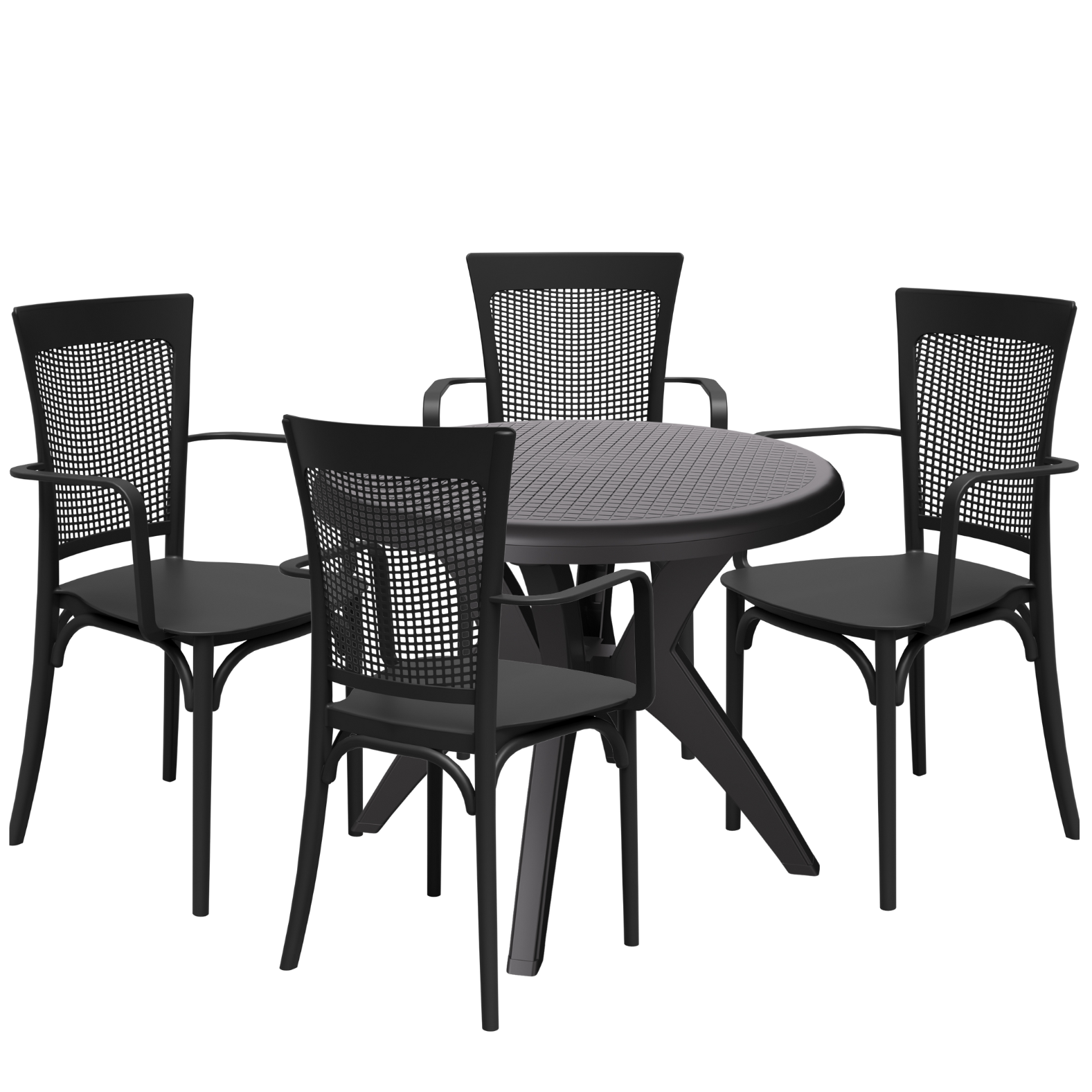 Mesa Deluxe 90 com 4 Poltronas Robust Palha Preto– FORTE PLÁSTICO