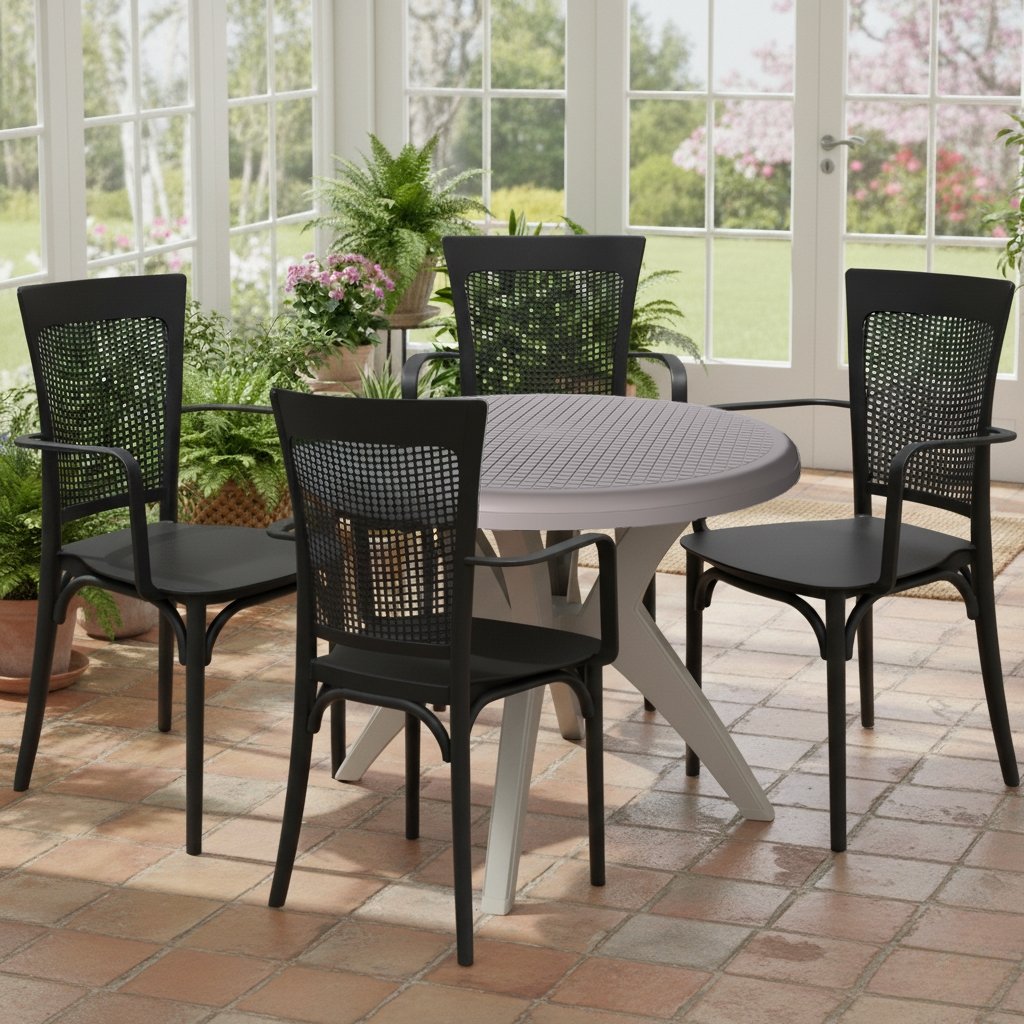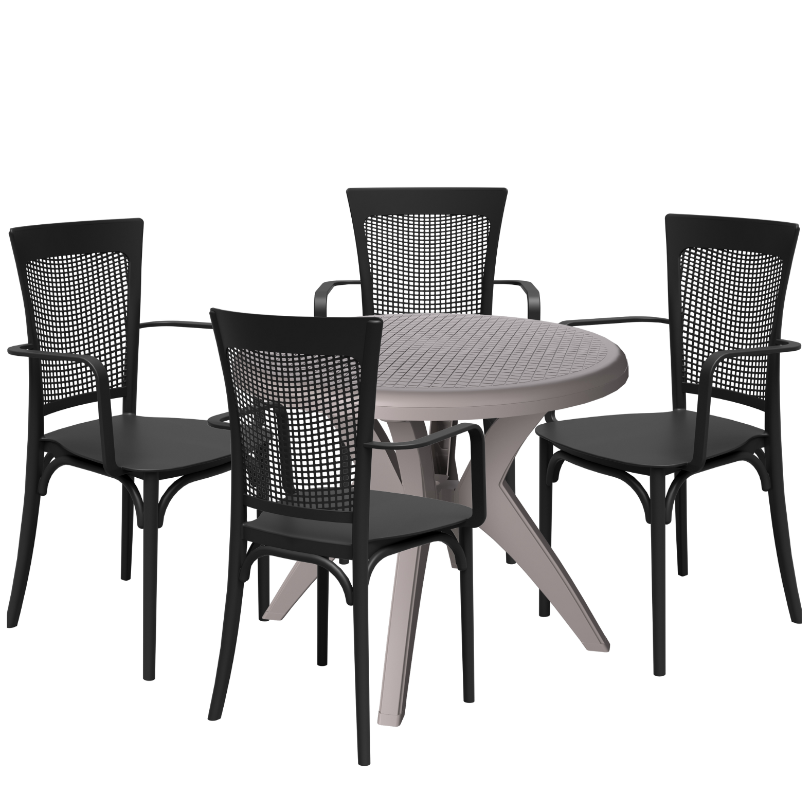 Mesa Deluxe 90 Nude com 4 Poltronas Robust Palha Preto– FORTE PLÁSTICO