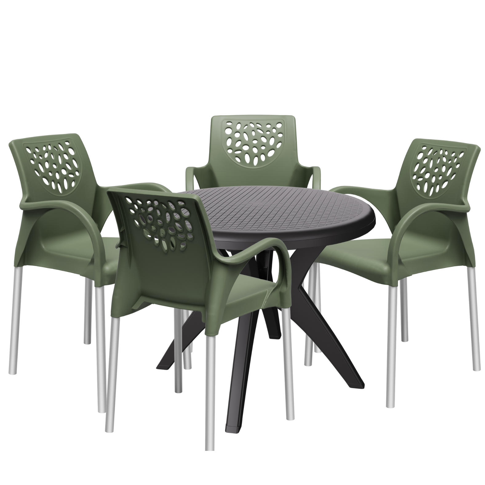 Mesa Deluxe 90 Preto com 4 Poltronas Deluxe Verde – FORTE PLÁSTICO