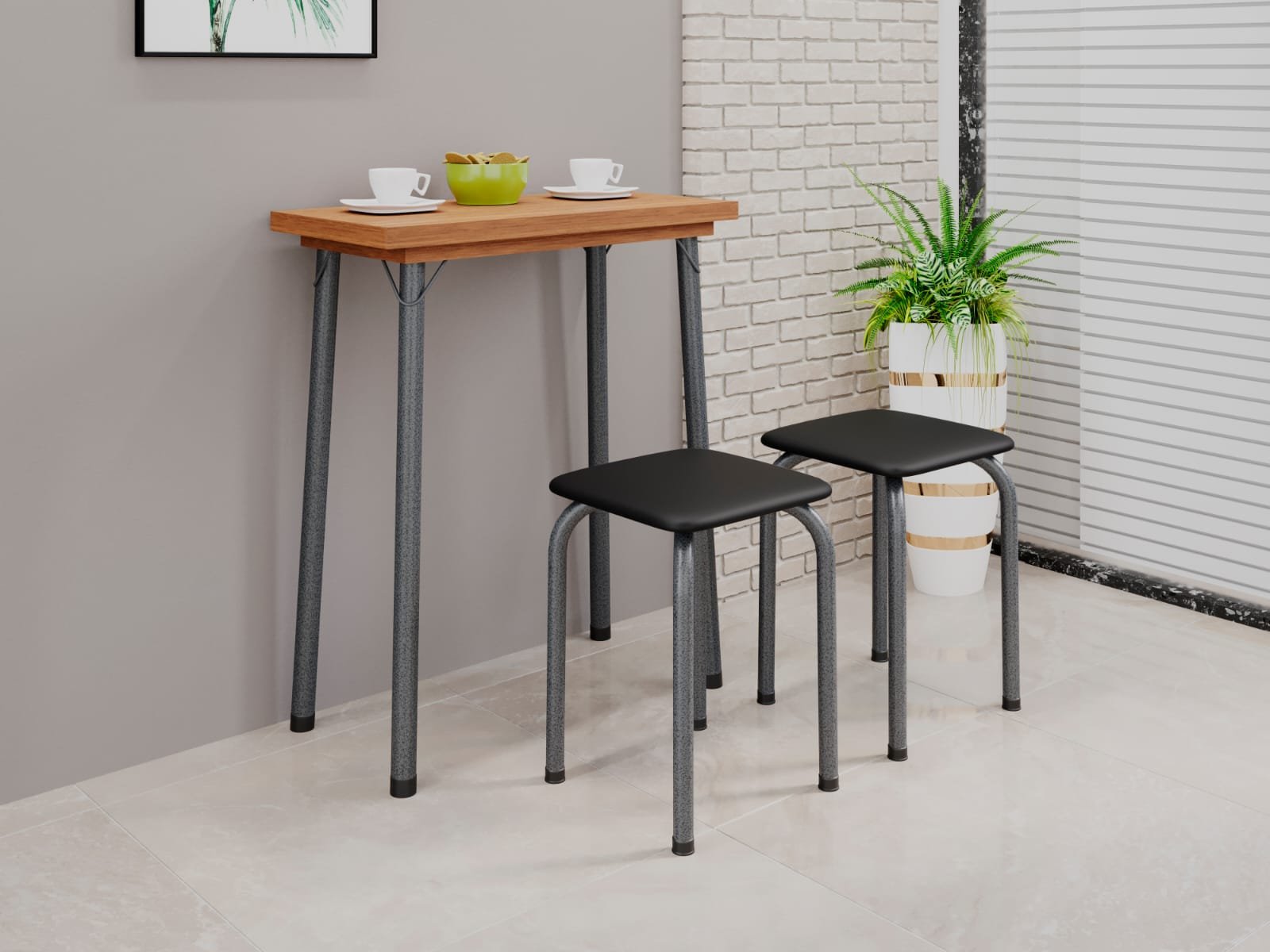 – Quatro banquetas com pés tubulares de aço carbono de 3/4″